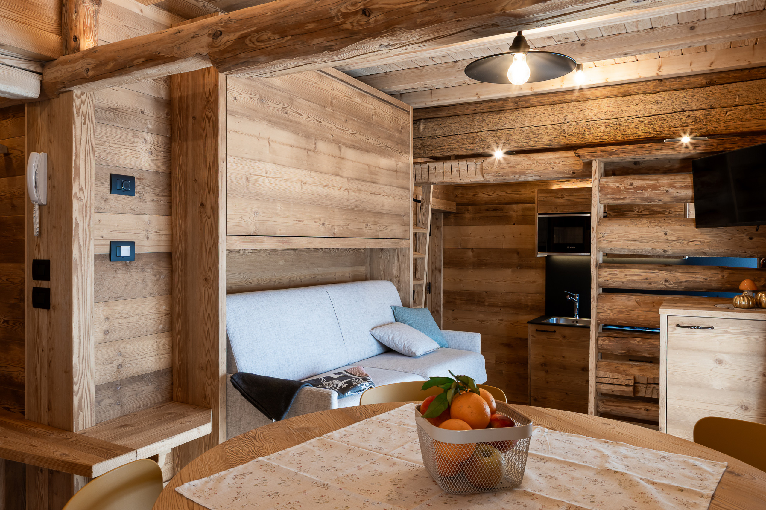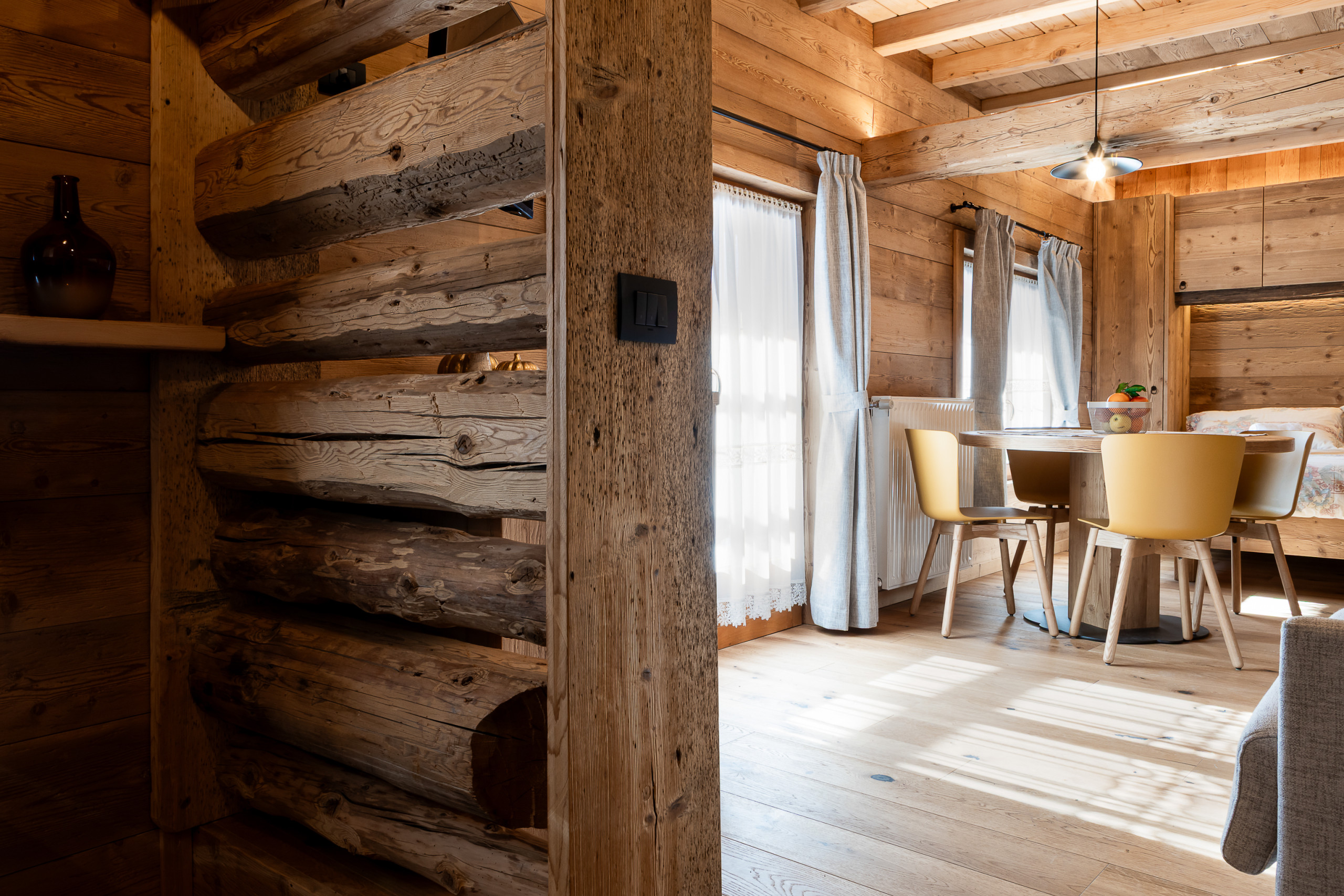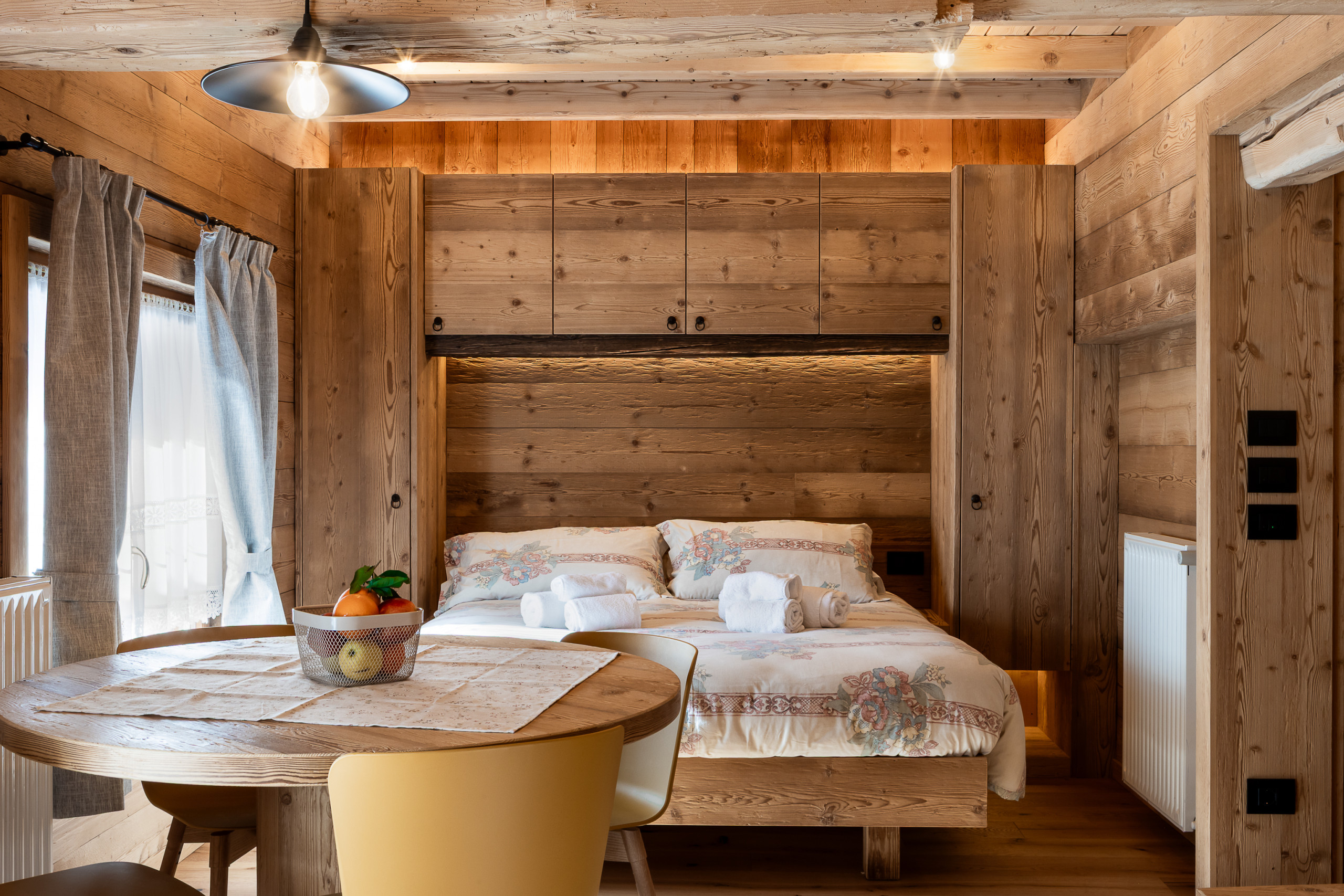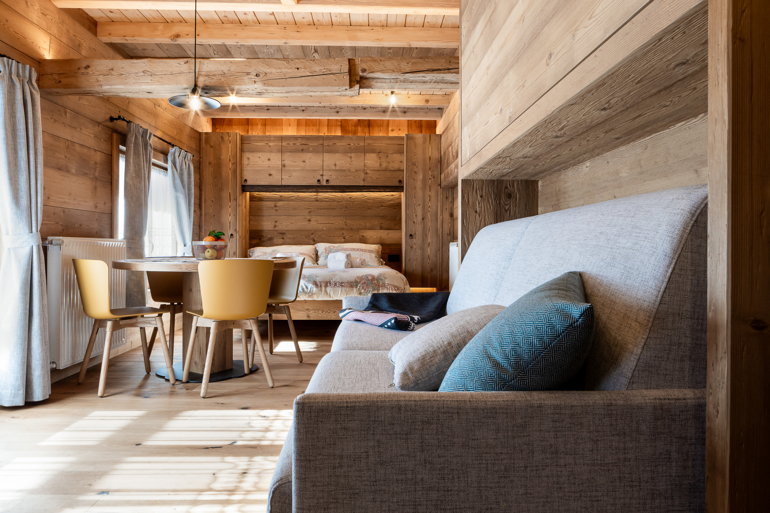 Qui cerchiamo di far vivere la montagna in modo più intimo e personale, in spazi curati con attenzione, dove ogni dettaglio è pensato per accogliere e far sentire bene chi arriva.