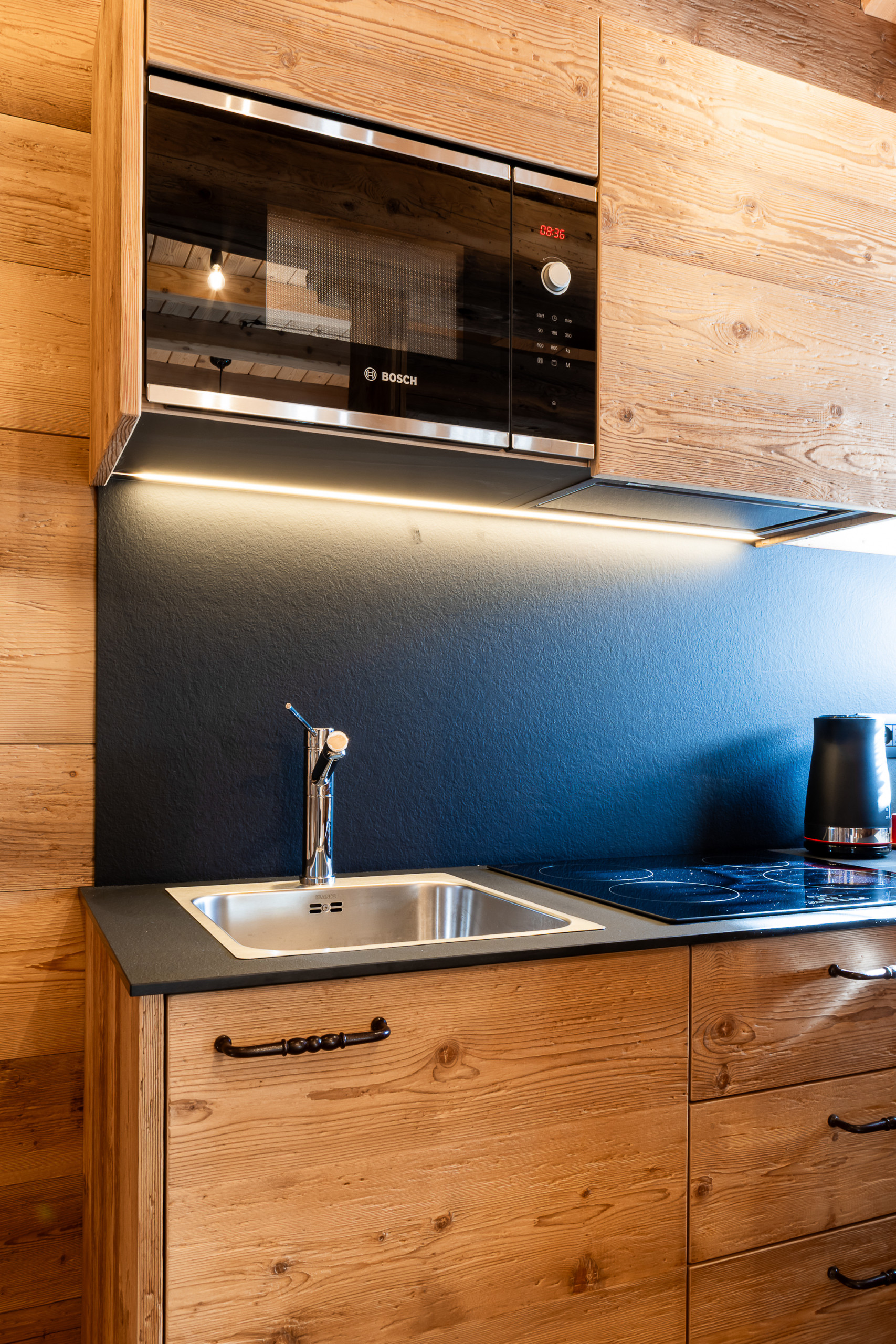 La Cucina Completamente Attrezzata: Preparate pasti indimenticabili insieme grazie agli elettrodomestici moderni: frigorifero, congelatore, lavastoviglie, microonde, caffettiera e bollitore. Tutti gli utensili e le stoviglie necessarie vi permetteranno di creare momenti speciali in questa romantica cornice, condividendo cene intime con vista sulle montagne.