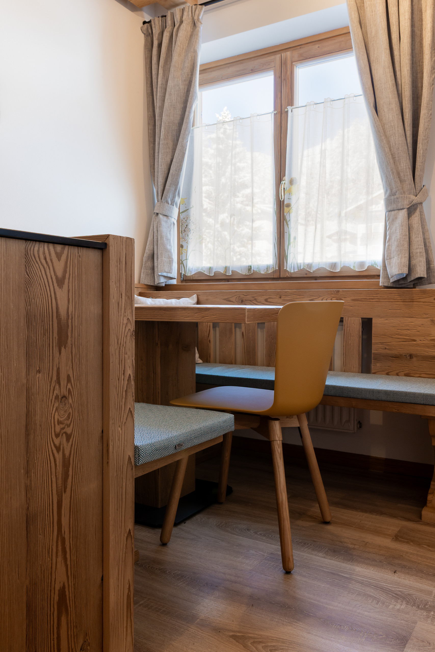 Qui cerchiamo di far vivere la montagna in modo più intimo e personale, in spazi curati con attenzione, dove ogni dettaglio è pensato per accogliere e far sentire bene chi arriva.