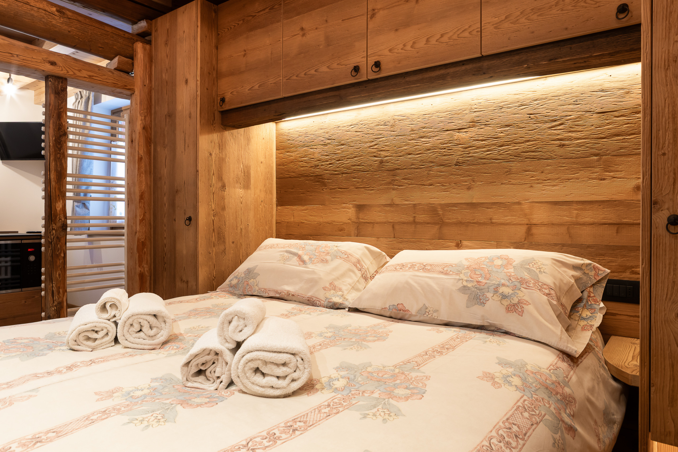 La Camera da Letto: Un'oasi di serenità con un confortevole letto queen size, perfetto per riposare dopo giornate indimenticabili tra i sentieri alpini. Ogni dettaglio è stato curato per garantirvi il massimo relax e intimità.