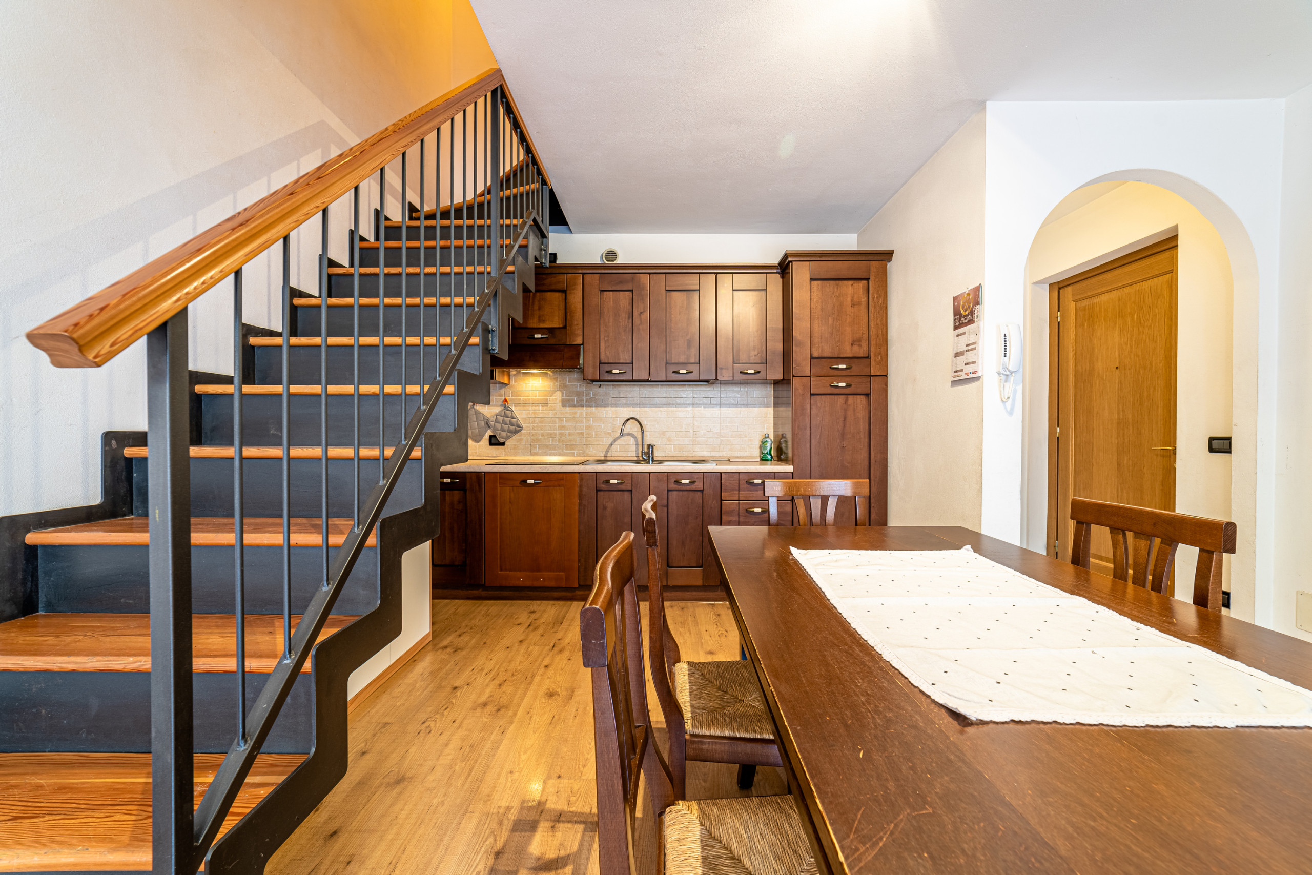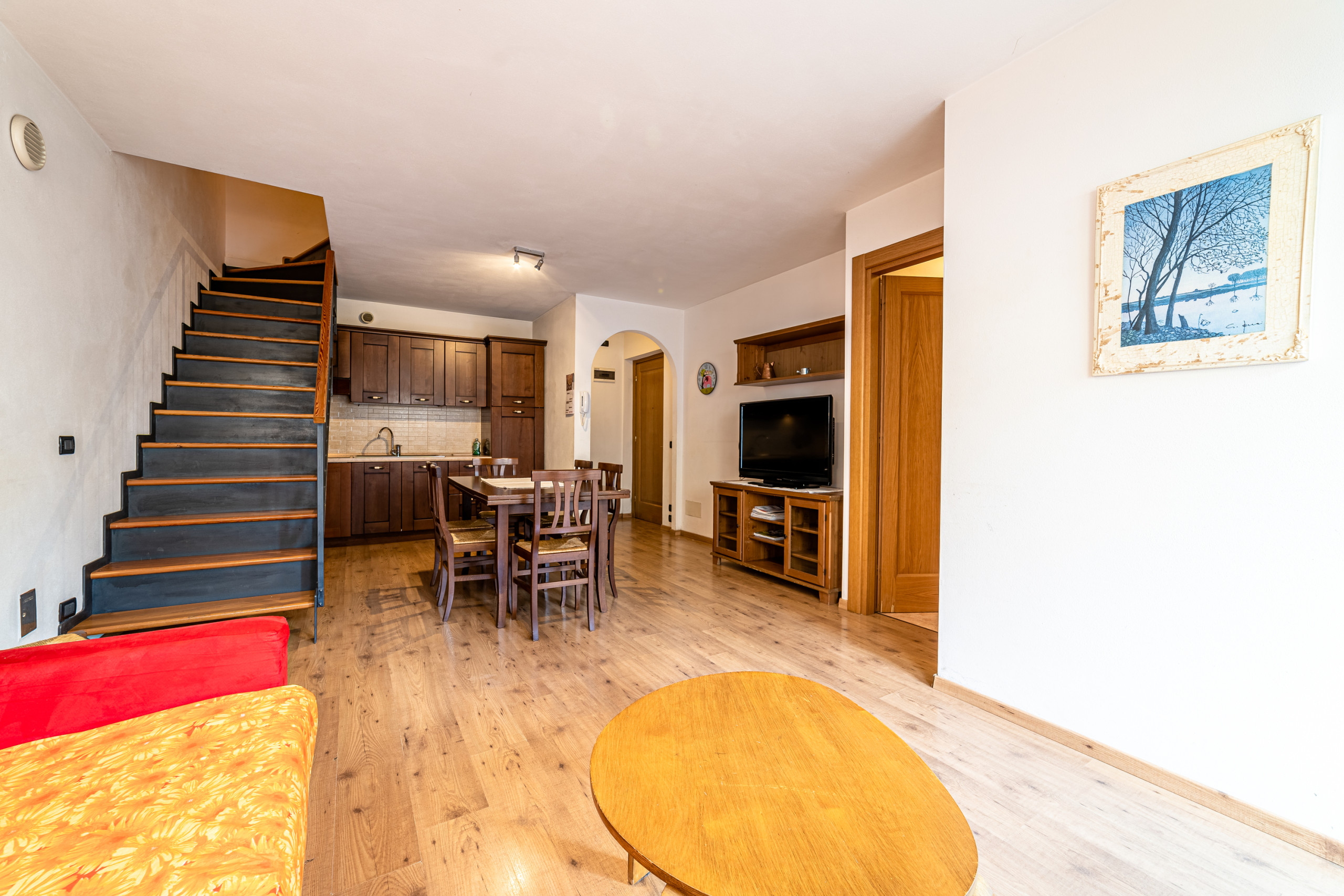 L’appartamento si trova al secondo piano ed è distribuito su due livelli.
