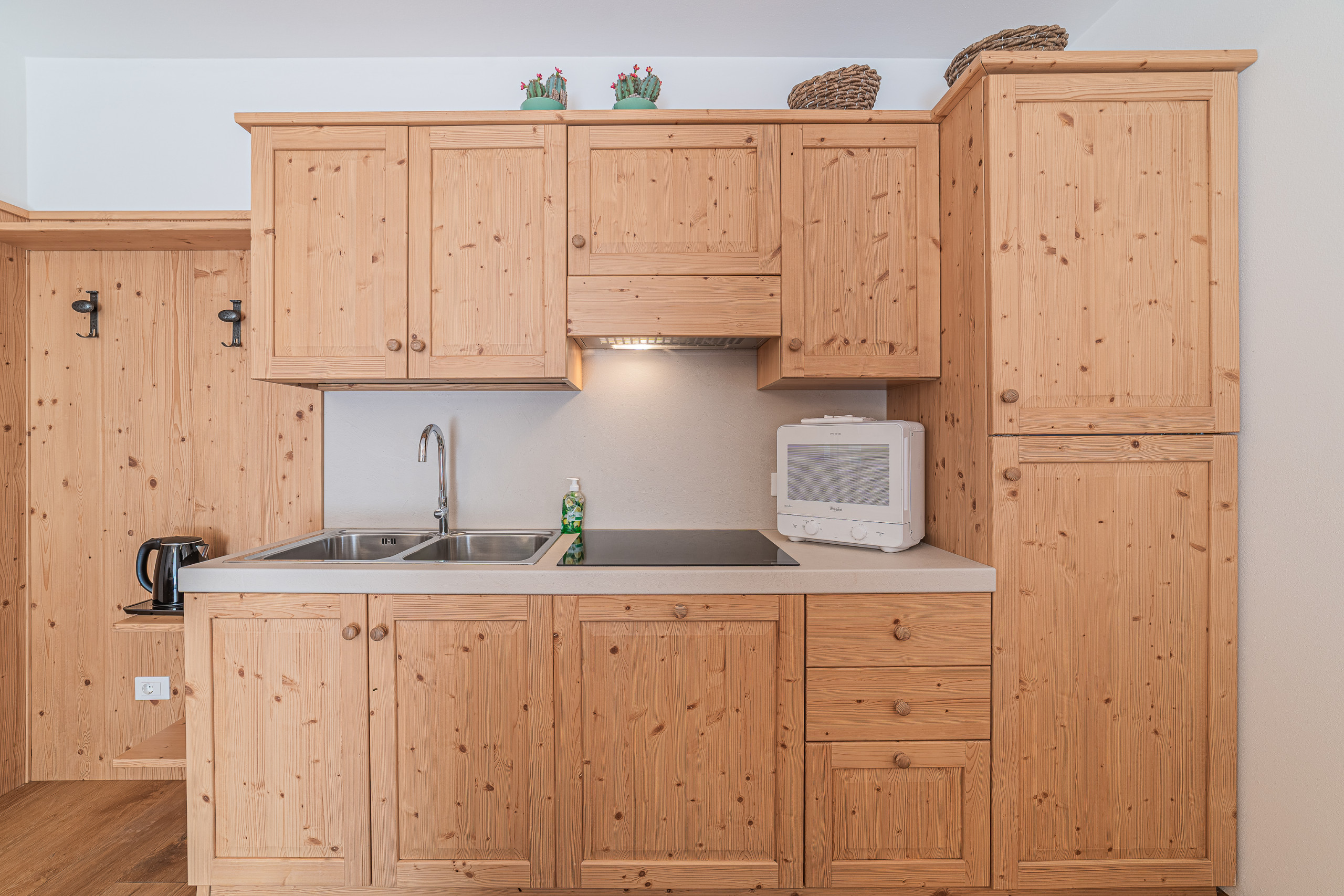 L'appartamento si compone di un luminoso soggiorno con angolo cottura a induzione, una camera matrimoniale spaziosa, un bagno moderno e un terrazzo panoramico dove godere di splendide viste montane. Lo stile semplice ma curato regala un’atmosfera calda e rilassante.