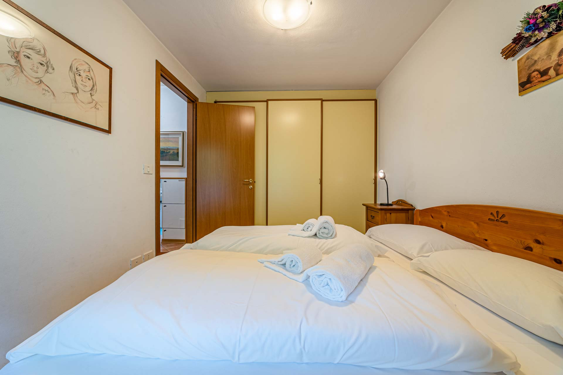 Distribuito su due livelli, questo trilocale accogliente può ospitare fino a quattro persone. Al piano terra si trovano la cucina attrezzata e un soggiorno luminoso con zona pranzo, oltre a un primo bagno funzionale. Salendo al piano superiore si accede alla zona notte, composta da una camera matrimoniale, una seconda cameretta con letto a castello e un secondo bagno con doccia. Gli ambienti sono semplici ma curati, pensati per offrire comfort dopo una giornata attiva tra escursioni o piste da sci.