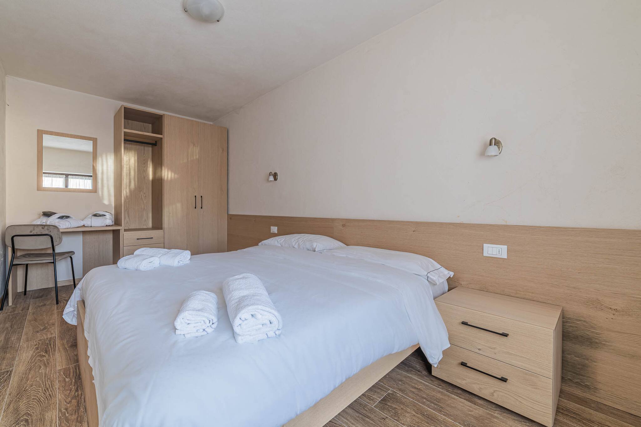 Al piano terra troverete una cucina completamente attrezzata, un soggiorno con divano letto matrimoniale e un bagno. Salendo al piano superiore si trova una camera matrimoniale e un secondo bagno con wc e lavandino, garantendo privacy e comfort anche per quattro ospiti.