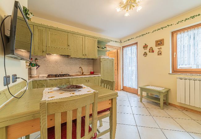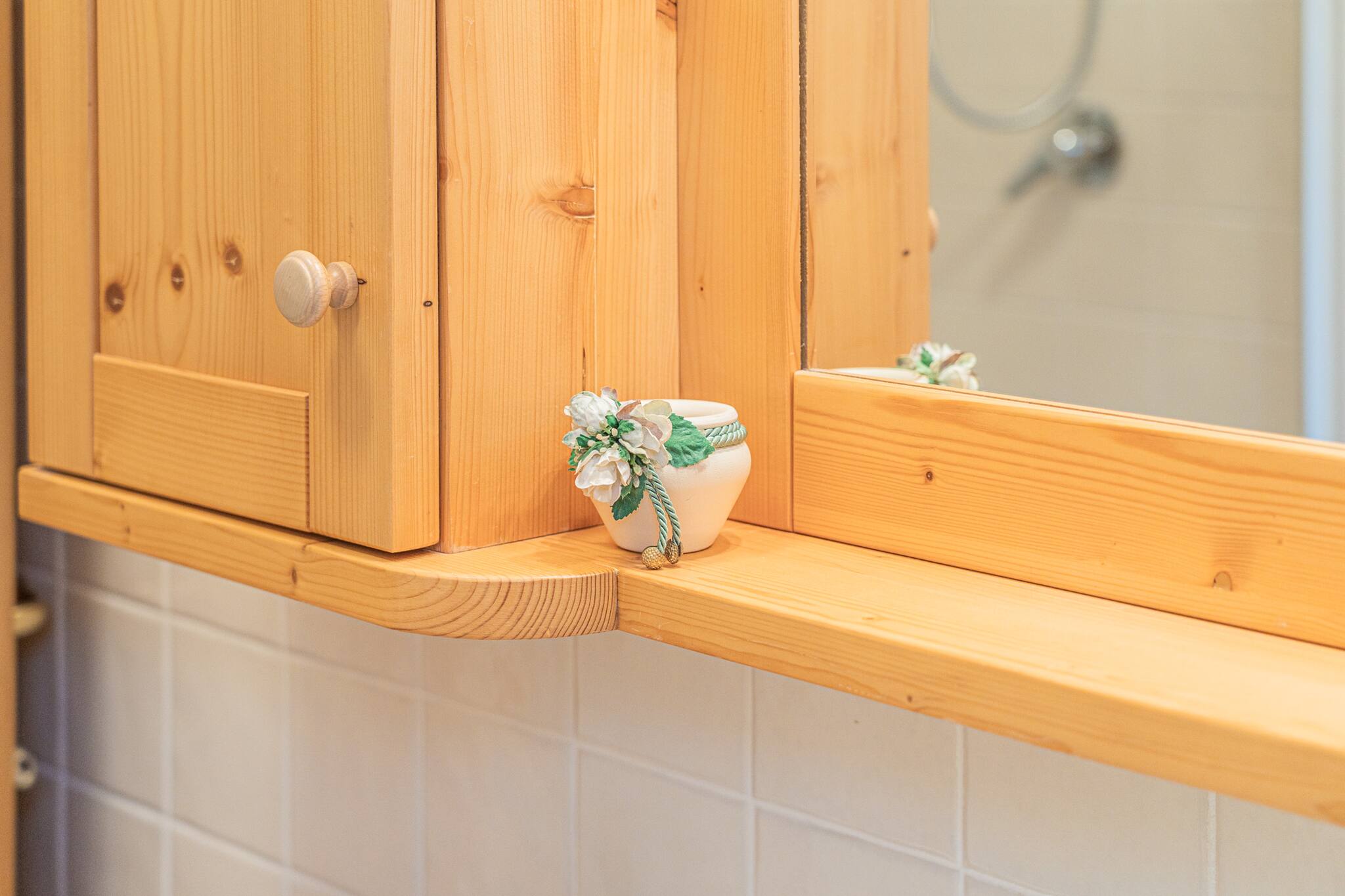 Al piano terra troverete un comodo bagno con doccia, perfetto per rinfrescarsi dopo una giornata di escursioni o sci. Salendo al primo piano, vi accoglie una cucina abitabile ben attrezzata, pensata per preparare ogni pasto con facilità. Il secondo piano ospita la camera matrimoniale con travi a vista e un piccolo bagno aggiuntivo con wc e lavandino.
