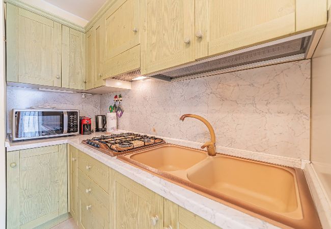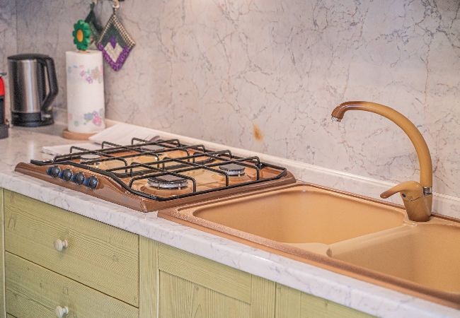 - Soggiorno con angolo cottura completo di frigorifero con freezer, piano cottura a gas, microonde, bollitore e macchina da caffè Lavazza a capsule.