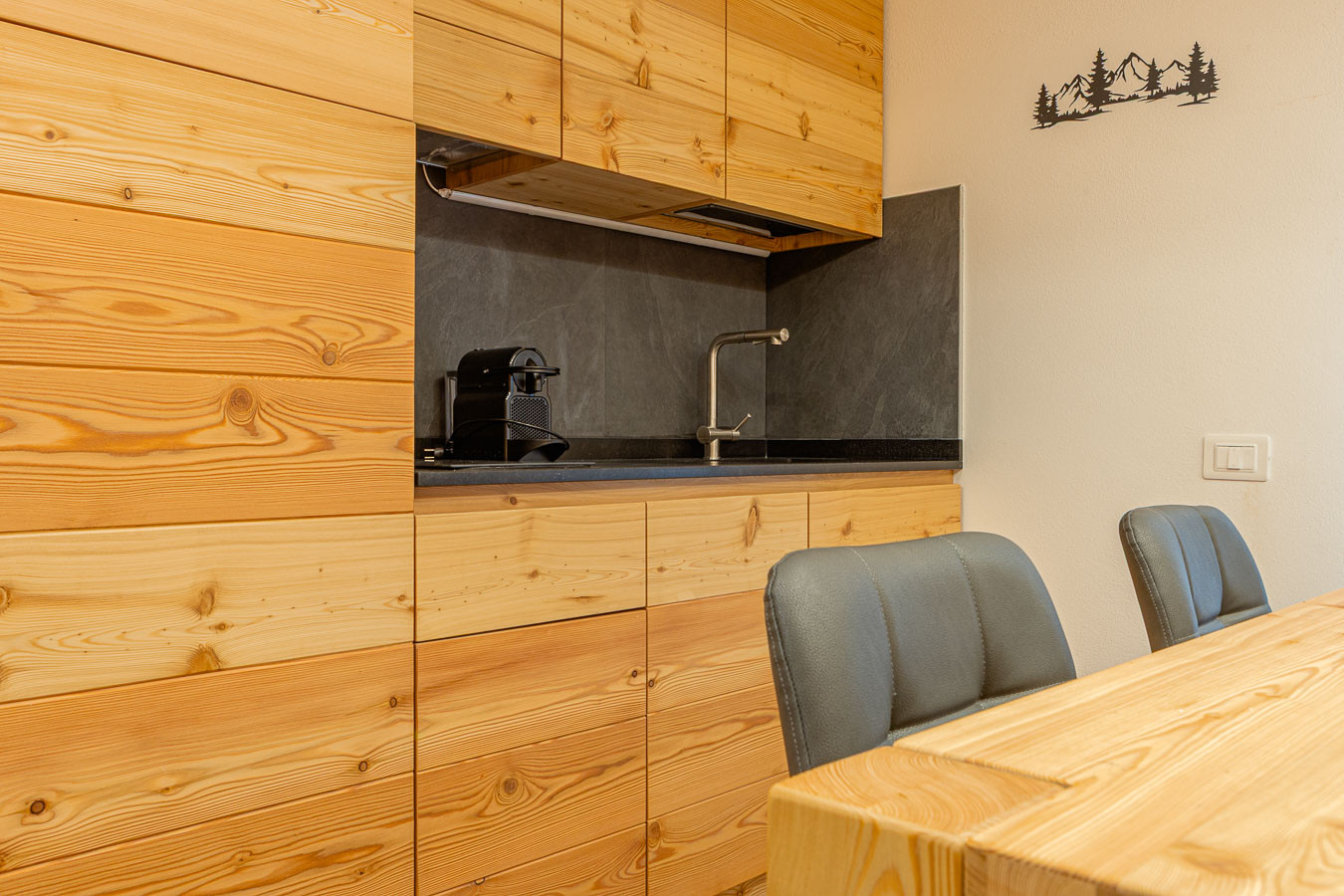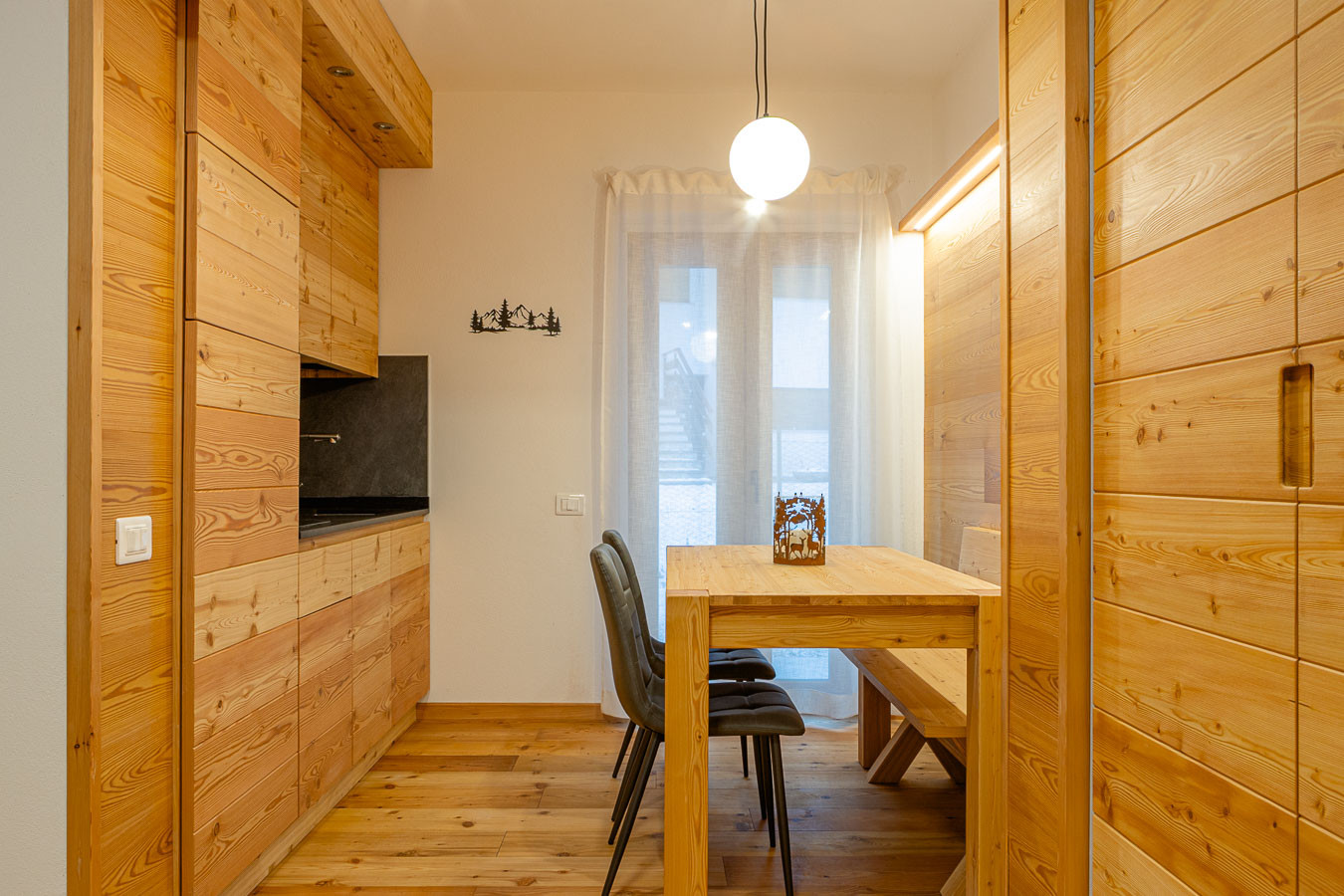 Dolomites Elements – Earth è un appartamento nuovo e accogliente nel cuore di Saviner. Il soggiorno luminoso con angolo cottura invita al relax, mentre la camera matrimoniale, la stanza con letti a castello e i due bagni garantiscono spazio e comfort. Tra Civetta e Marmolada, Saviner è un piccolo gioiello immerso nella quiete delle Dolomiti: a pochi minuti da Caprile, vicina a piste famose d’inverno e alla natura più pura d’estate.