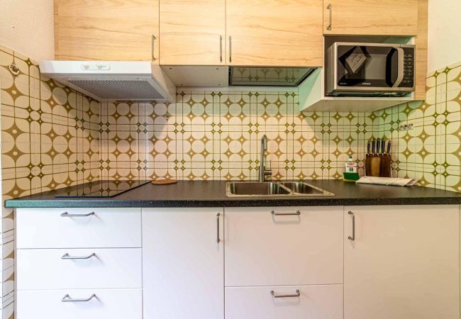 -Cucina attrezzata con piano cottura a induzione, forno a microonde, bollitore