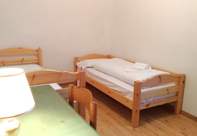 L’appartamento è composto da una cucina attrezzata e una zona soggiorno con divano letto matrimoniale. La camera principale è dotata di due letti a castello, mentre il bagno è comodo e completo di tutti i servizi essenziali. All’esterno, un terrazzo offre uno spazio rilassante con vista sul verde e sulle montagne.