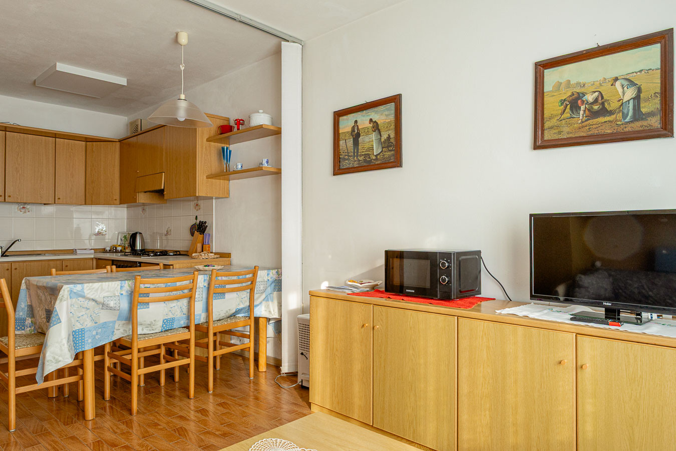 L’appartamento è attrezzato con ogni comfort: cucina con piano cottura a gas, forno, lavastoviglie, lavatrice, bollitore, phon e TV.