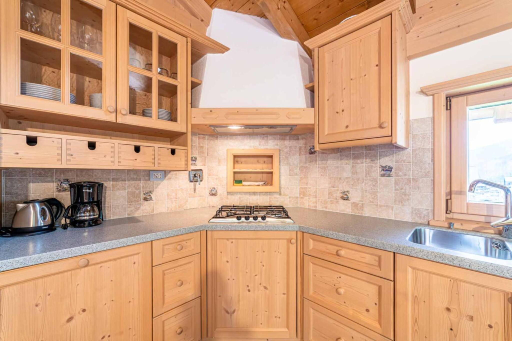 -Cucina attrezzata con piano cottura a gas, forno, lavastoviglie, bollitore, macchina per il caffè americano e utensili
