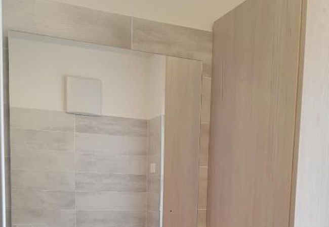 L’abitazione è composta da una zona giorno luminosa con cucina e soggiorno, un bagno funzionale con doccia, una camera con due letti a castello e un divano letto matrimoniale nella zona living. Può ospitare comodamente fino a 4 persone.