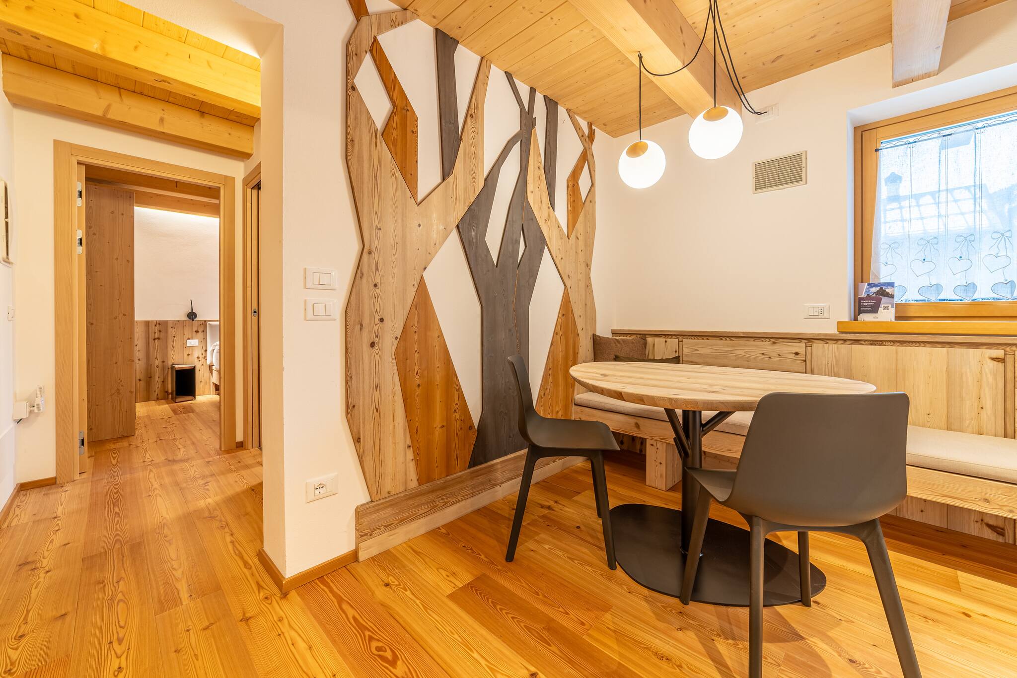 Un ambiente intimo e confortevole, perfetto per rilassarsi dopo un’escursione o una giornata sulla neve.