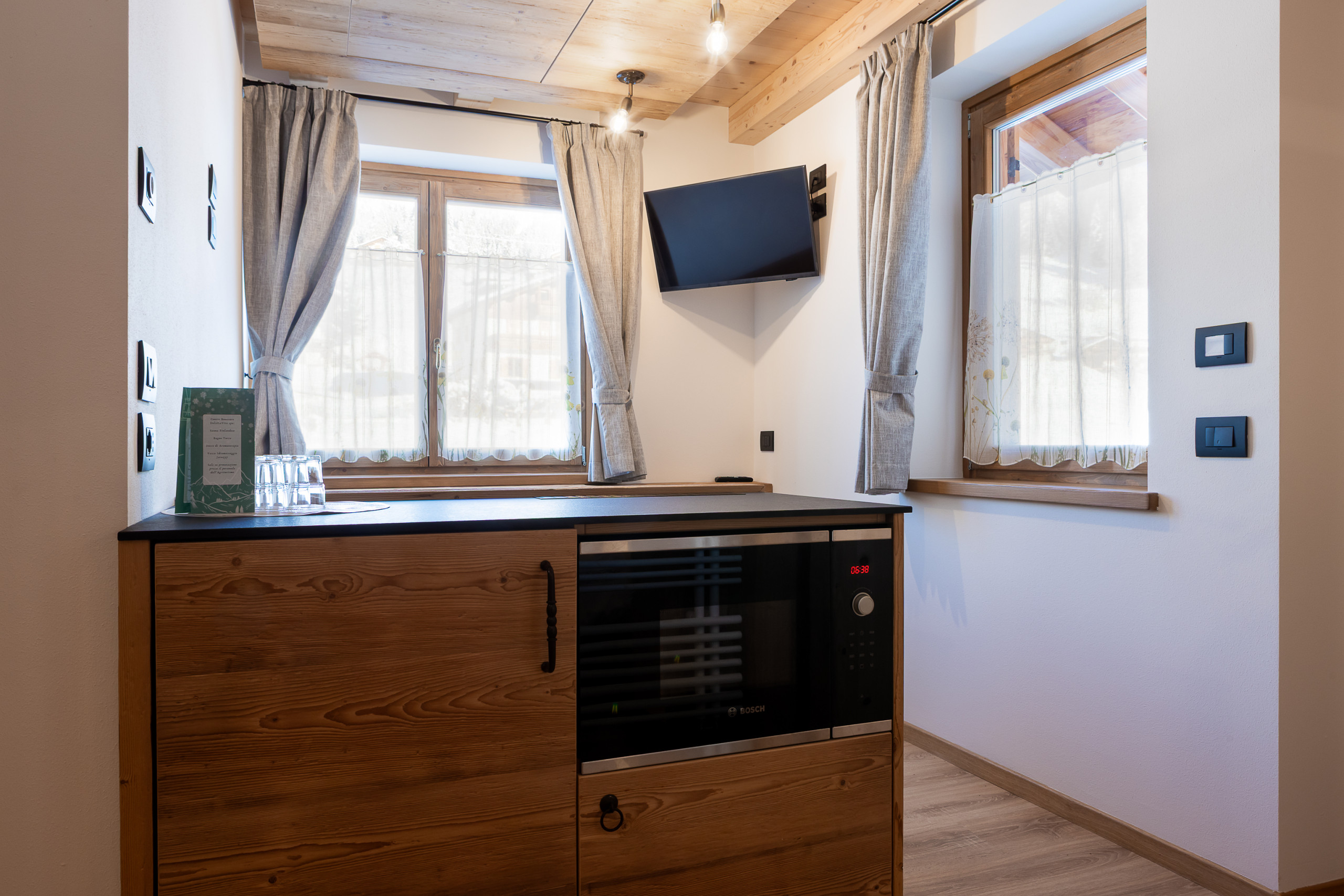 Komfort und Dienstleistungen: Zentralheizung für die kalten Alpennächte, WiFi-Verbindung, um verbunden zu bleiben, Safe für Ihre wertvollen Gegenstände und ein Fernseher für Entspannungsmomente. Ein privater Außenparkplatz in der Anlage vervollständigt die Ihnen zur Verfügung stehenden Dienstleistungen.