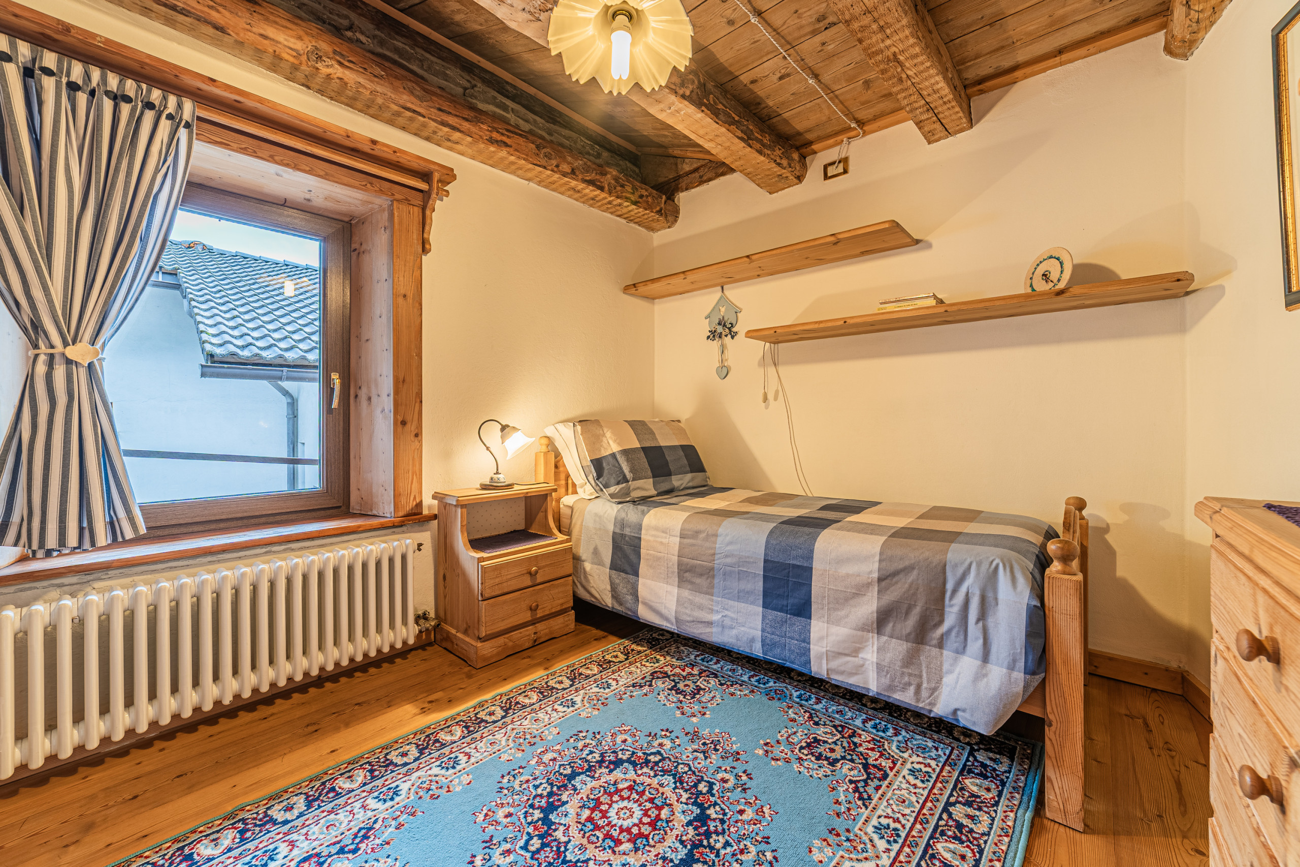 Im Obergeschoss befinden sich ein Doppelzimmer, ein mit Geschmack eingerichtetes Zweibettzimmer und ein Badezimmer.