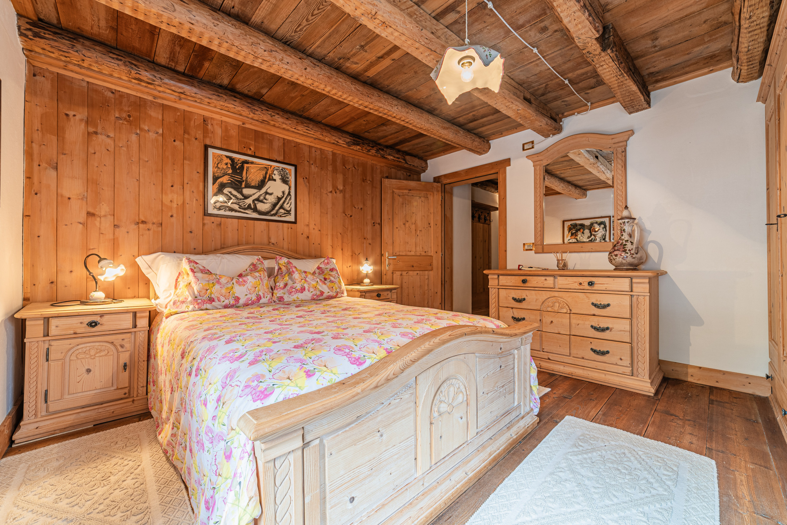 Im Eingang empfängt Sie ein helles Wohnzimmer mit Küchenzeile, im Alpinstil eingerichtet und mit allem Nötigen zum Kochen ausgestattet. Der Schlafbereich teilt sich in ein Doppelzimmer, ein Einzelzimmer und ein faszinierendes Holz-Zwischengeschoss mit einem zusätzlichen Bett: eine perfekte Ecke für Kinder oder zum Entspannen beim Lesen. Das Bad ist funktional und verfügt über ein Fenster.