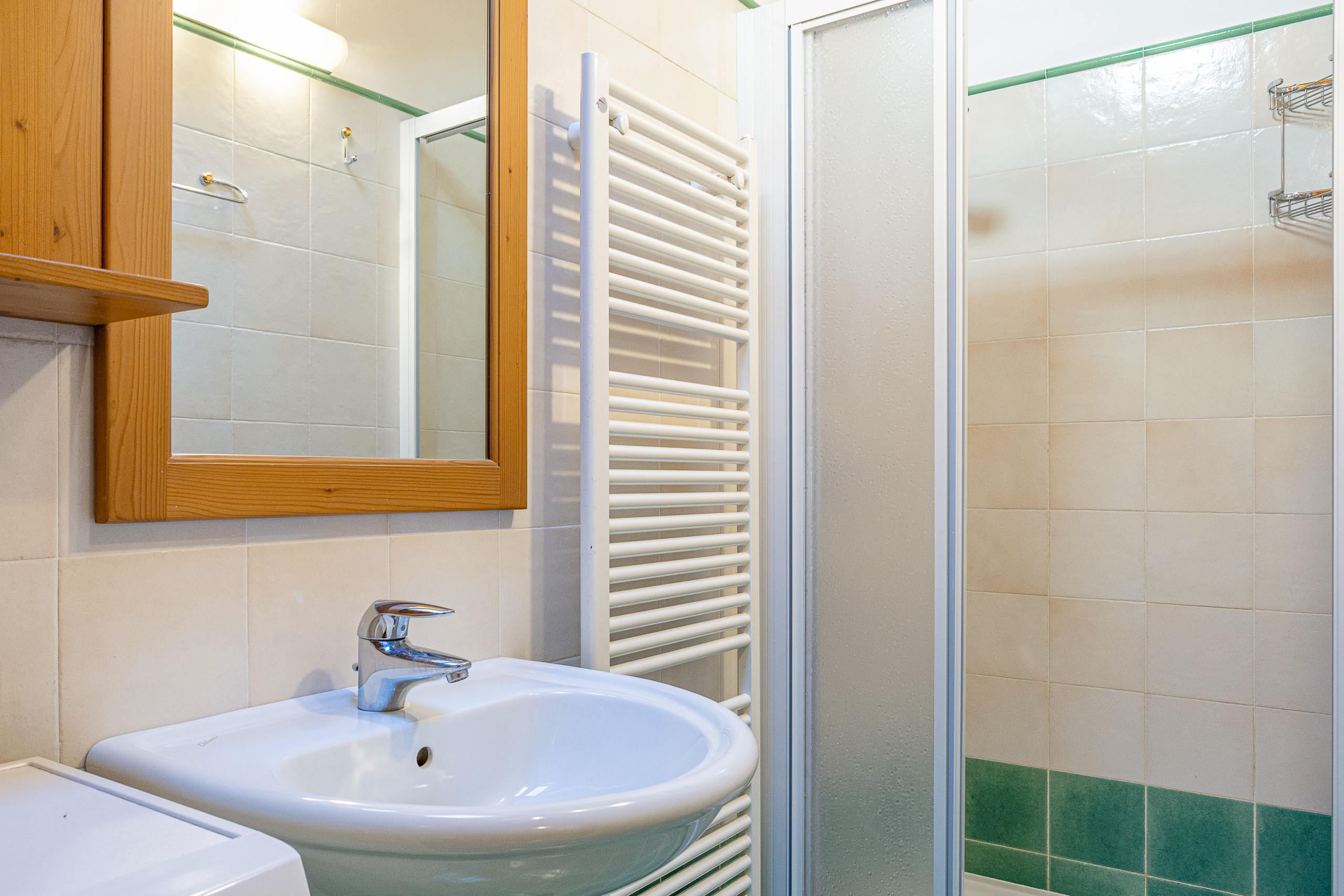 Die zwei Badezimmer sind ein weiterer Pluspunkt: eines mit Dusche und das andere mit Sanitäreinrichtungen, bieten Praktikabilität und Komfort. Die Wohnung ist mit Zentralheizung ausgestattet, die eine immer einladende und temperierte Umgebung gewährleistet, ideal nach einem Tag voller Ausflüge oder Skifahren.
