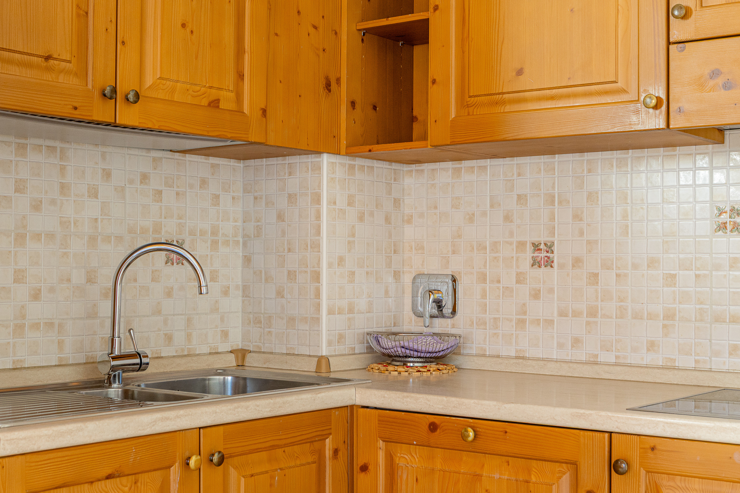 Die amerikanische Küche ist komplett ausgestattet und repräsentiert das Herzstück der Wohnung. Mit allen modernen Annehmlichkeiten ausgestattet, umfasst sie Kühlschrank, Gefrierschrank, Geschirrspüler, Kaffeemaschine, Wasserkocher, Mikrowelle und alle notwendigen Utensilien, um köstliche Mahlzeiten zuzubereiten. Ein Pluspunkt für alle, die gerne kochen oder Frühstücke und Abendessen mit der Familie genießen.