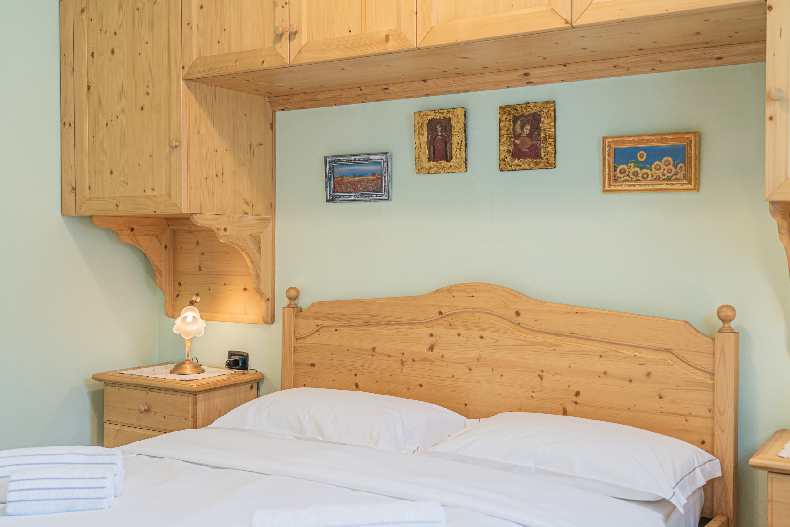 - Schlafzimmer mit Doppelbett, Vier-Jahreszeiten-Steppdecke und Bettwäsche inklusive.
