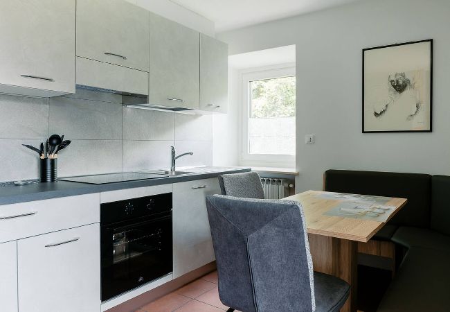 Im Erdgeschoss finden Sie eine voll ausgestattete Küche, ein Wohnzimmer mit Doppelbettsofa und ein Badezimmer. Im Obergeschoss befindet sich ein Doppelzimmer und ein zweites Badezimmer mit WC und Waschbecken, das Privatsphäre und Komfort für bis zu vier Gäste gewährleistet.