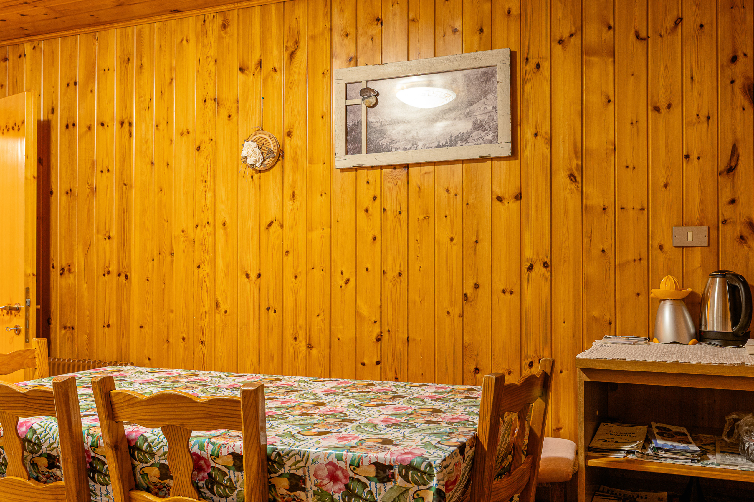 Im Winter steht den Gästen im Erdgeschoss des Hauses ein Skiraum mit beheiztem Skischuhwärmer zur Verfügung. In den wärmeren Jahreszeiten verwandelt sich der Raum in einen Fahrradraum, ideal für diejenigen, die die Pfade erkunden möchten.
