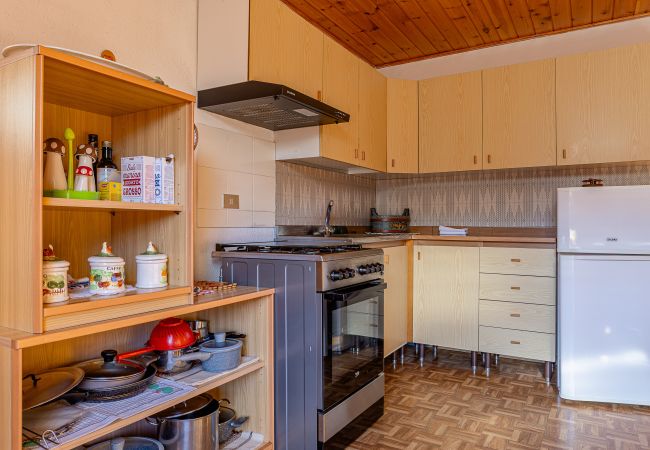 Die Wohnung besteht aus einer ausgestatteten Küche und einem Wohnbereich mit Doppelbettsofa. Das Hauptschlafzimmer verfügt über zwei Stockbetten, während das Badezimmer bequem und mit allen wesentlichen Annehmlichkeiten ausgestattet ist. Im Freien bietet eine Terrasse einen entspannenden Raum mit Blick auf Grün und Berge.