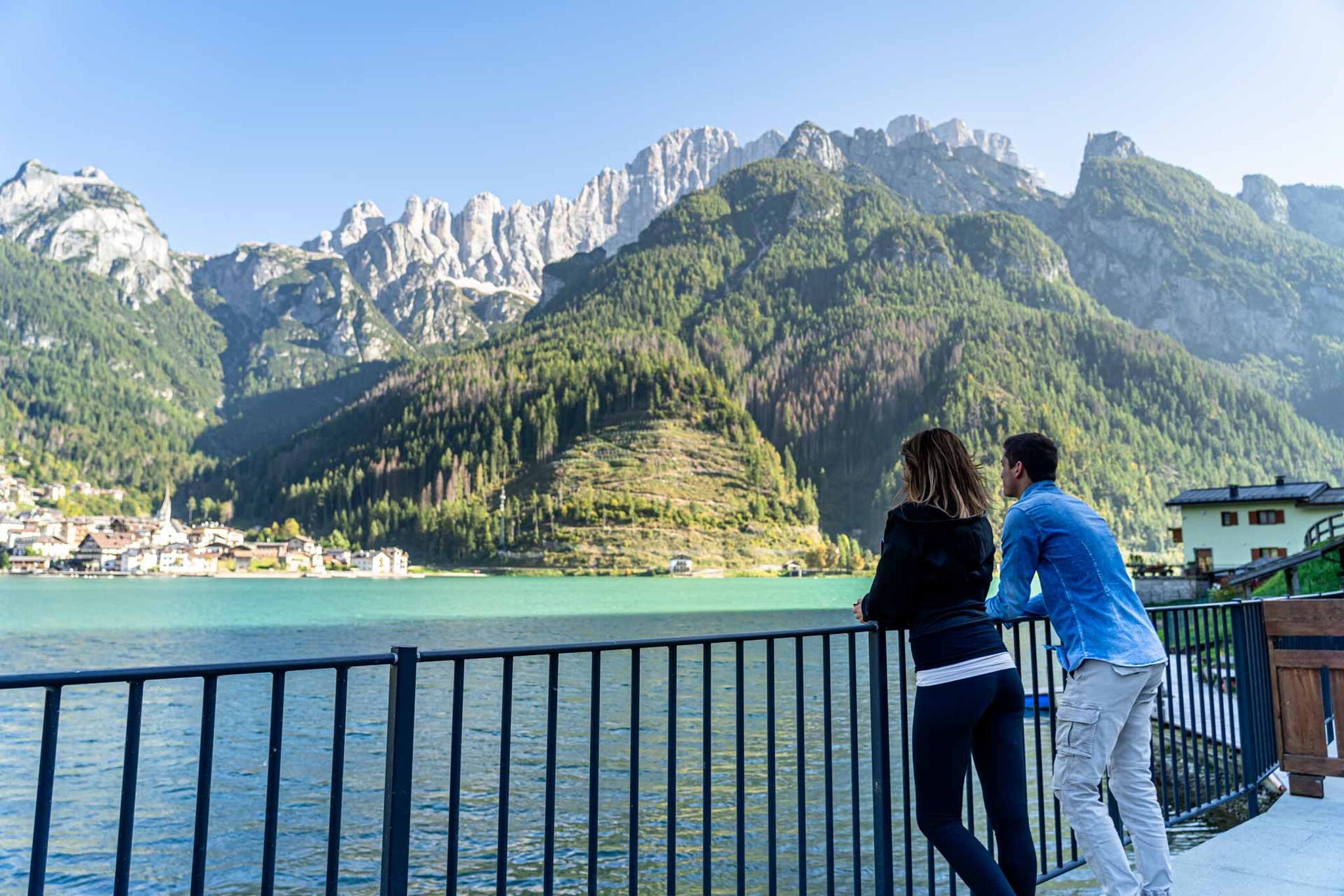 Im UNESCO-Welterbe der Dolomiten können Sie sich auf der Terrasse am See entspannen und den Monte Civetta bewundern.