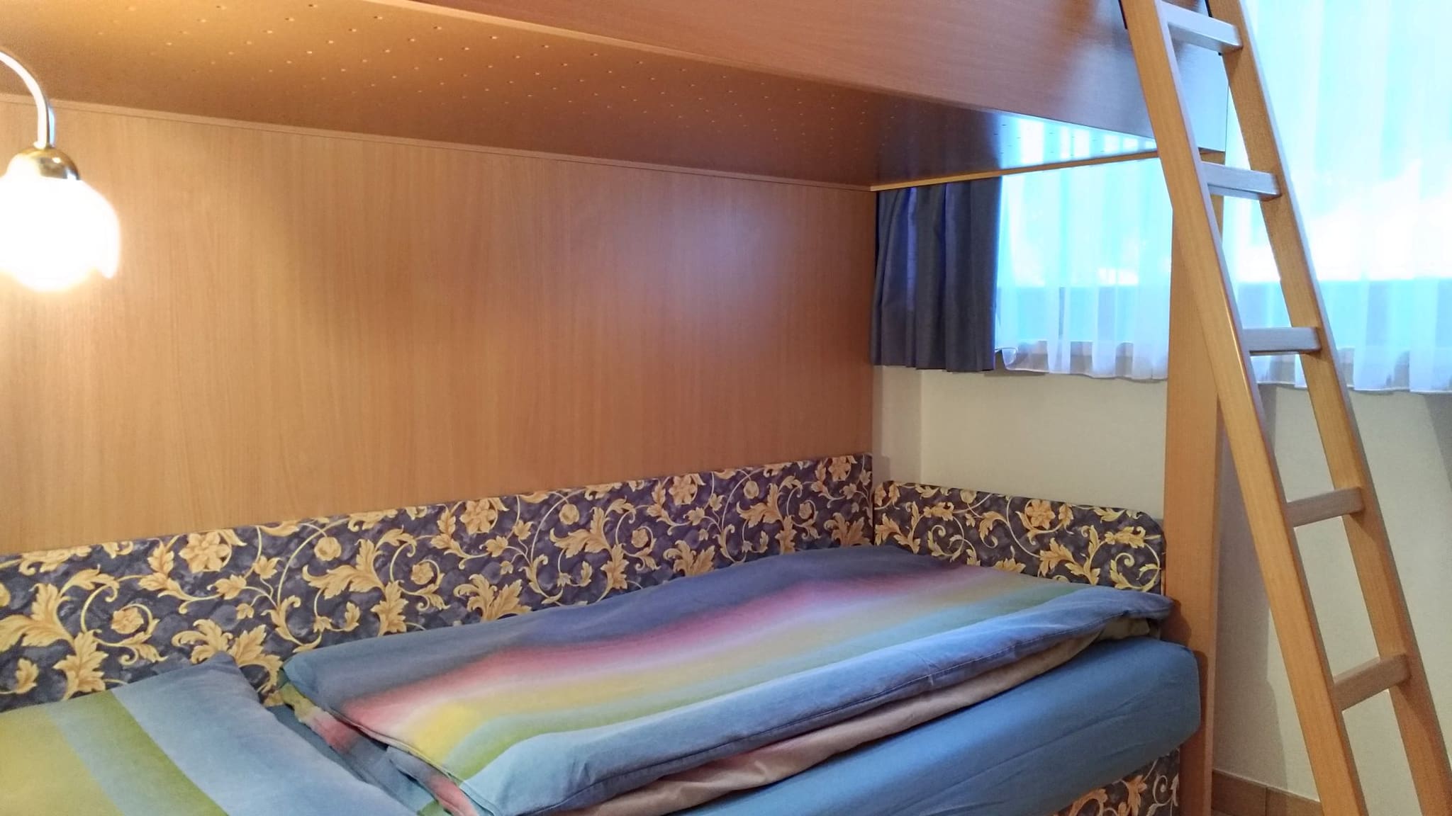 Die Wohnung besteht aus einem hellen Wohnbereich mit Küche und Wohnzimmer, einem funktionalen Badezimmer mit Dusche, einem Zimmer mit zwei Stockbetten und einem Schlafsofa im Wohnbereich. Sie kann bequem bis zu 4 Personen beherbergen.
