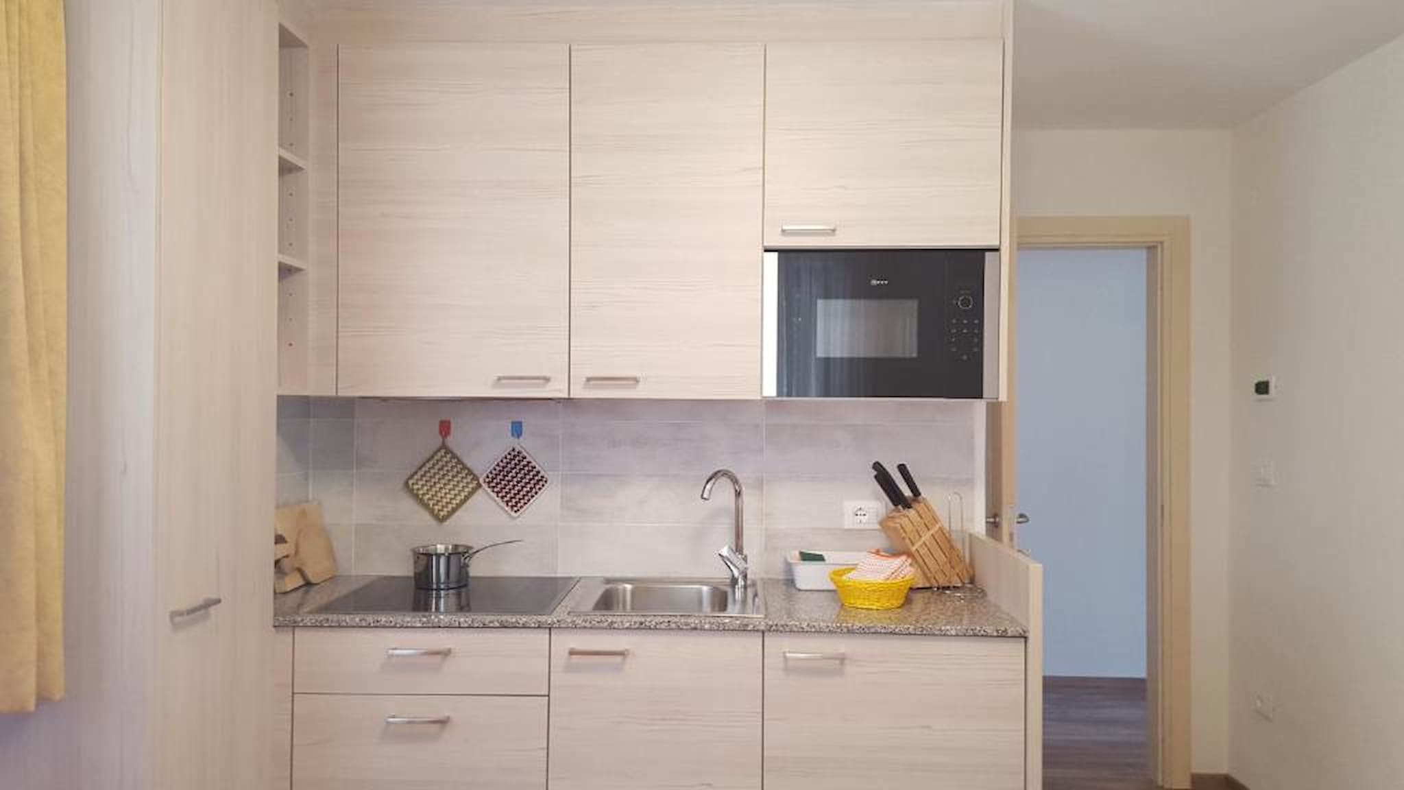 Die Wohnung ist mit allen Annehmlichkeiten ausgestattet: Küche mit Gasherd, Backofen, Geschirrspüler, Waschmaschine, Wasserkocher, Föhn und TV.