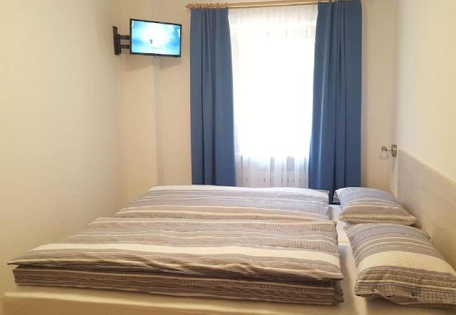 Die Wohnung besteht aus einem Wohnzimmer mit Küchenzeile, zwei Doppelzimmern und einem Badezimmer und ist ideal für Familien oder Gruppen geeignet.