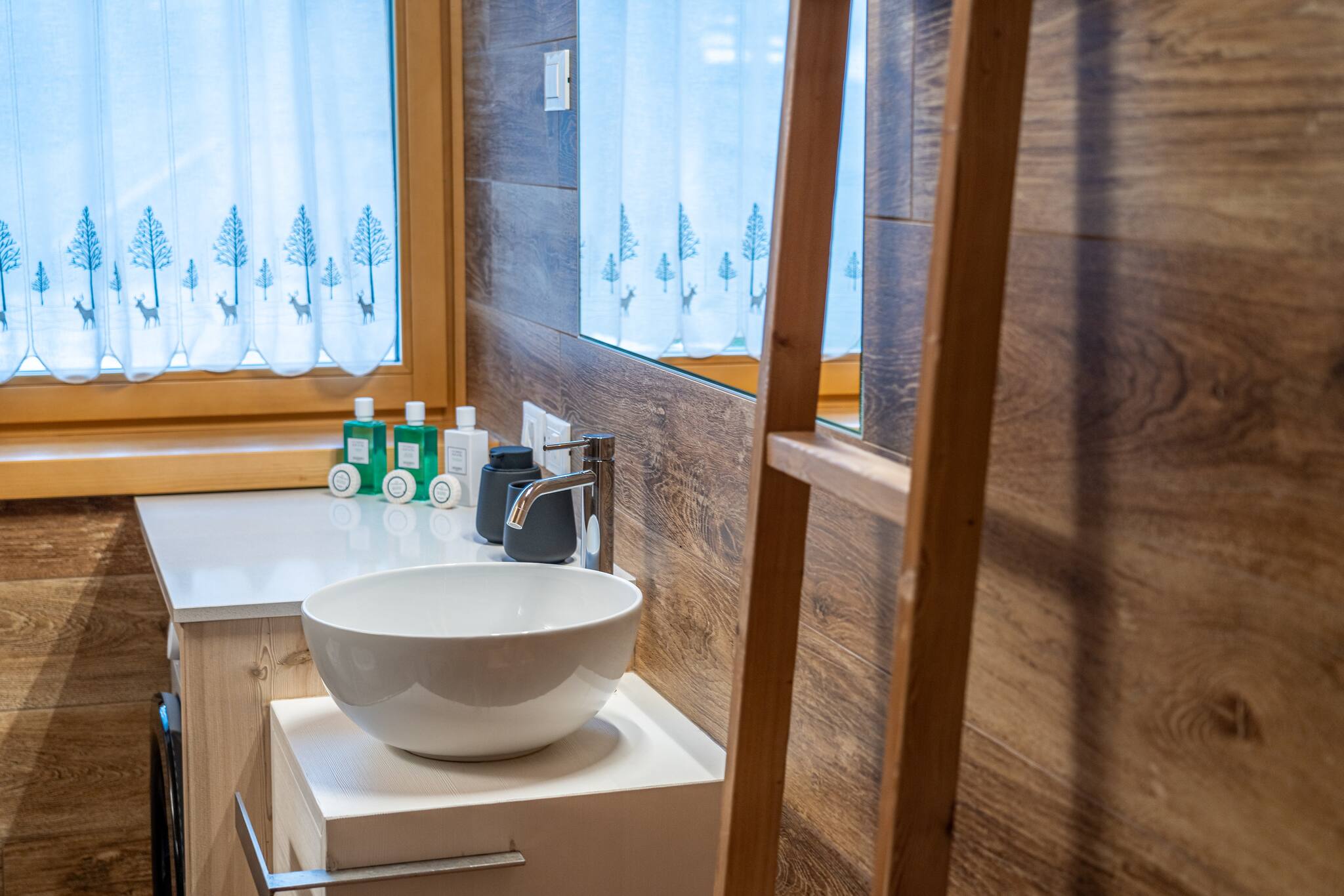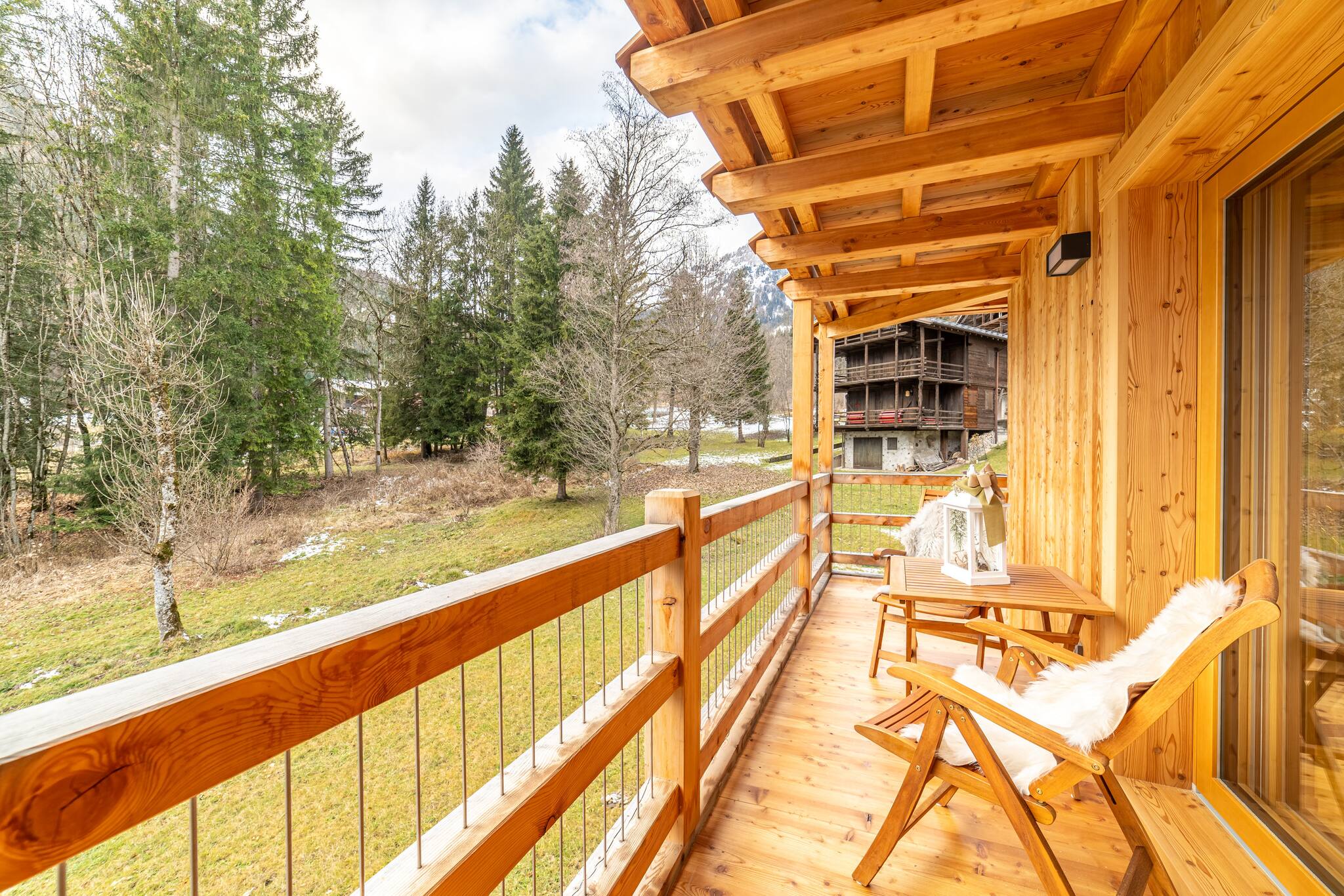 Die modernen und sorgfältig gestalteten Innenräume verfügen über große Fenster, die einen spektakulären Blick auf die Berge bieten.