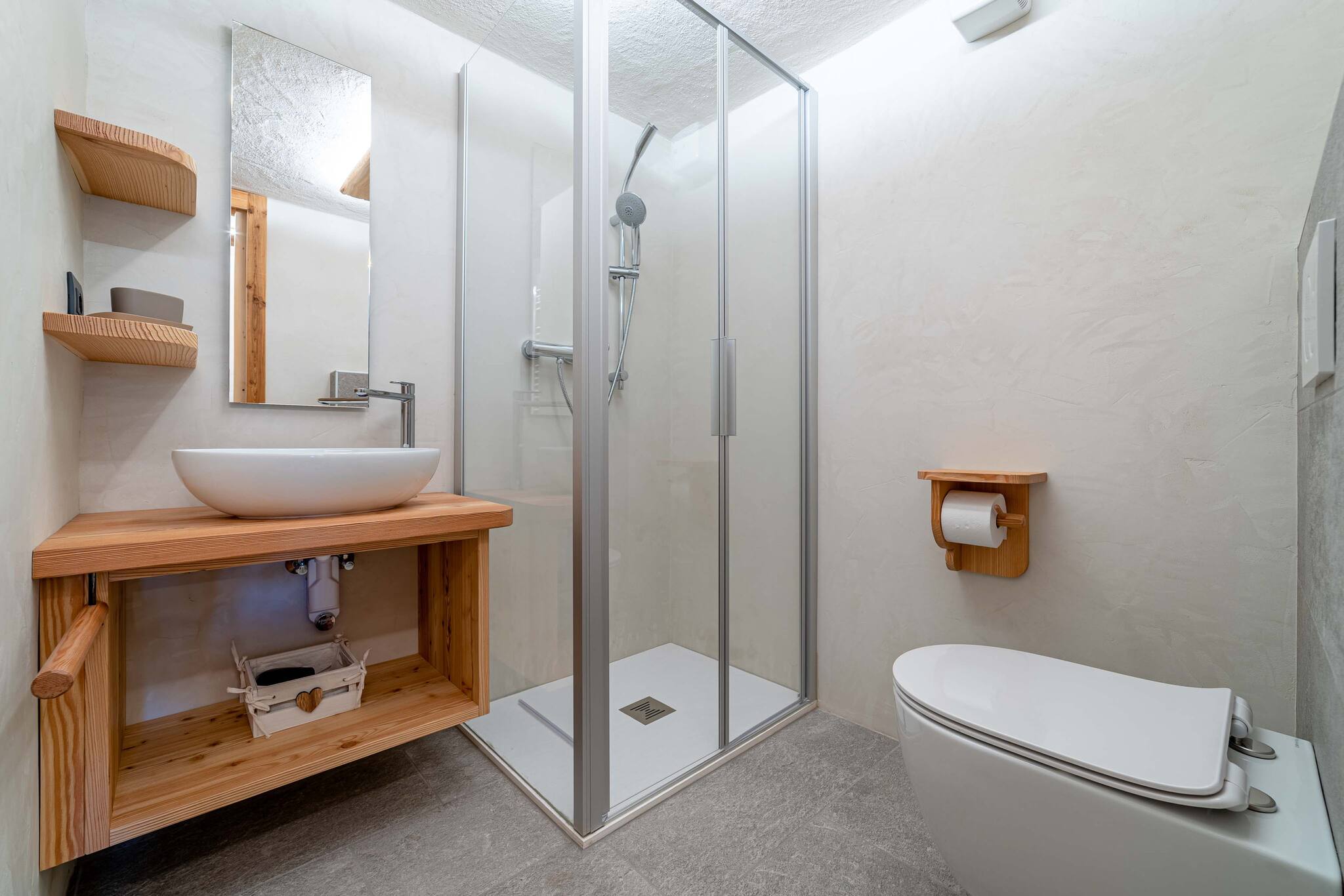 Der unabhängige Eingang garantiert vollständige Privatsphäre, während der alpine Kontext eine authentische und regenerative Atmosphäre bietet, ideal für Wanderer, Skifahrer oder Slow-Traveler.