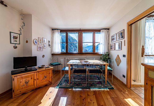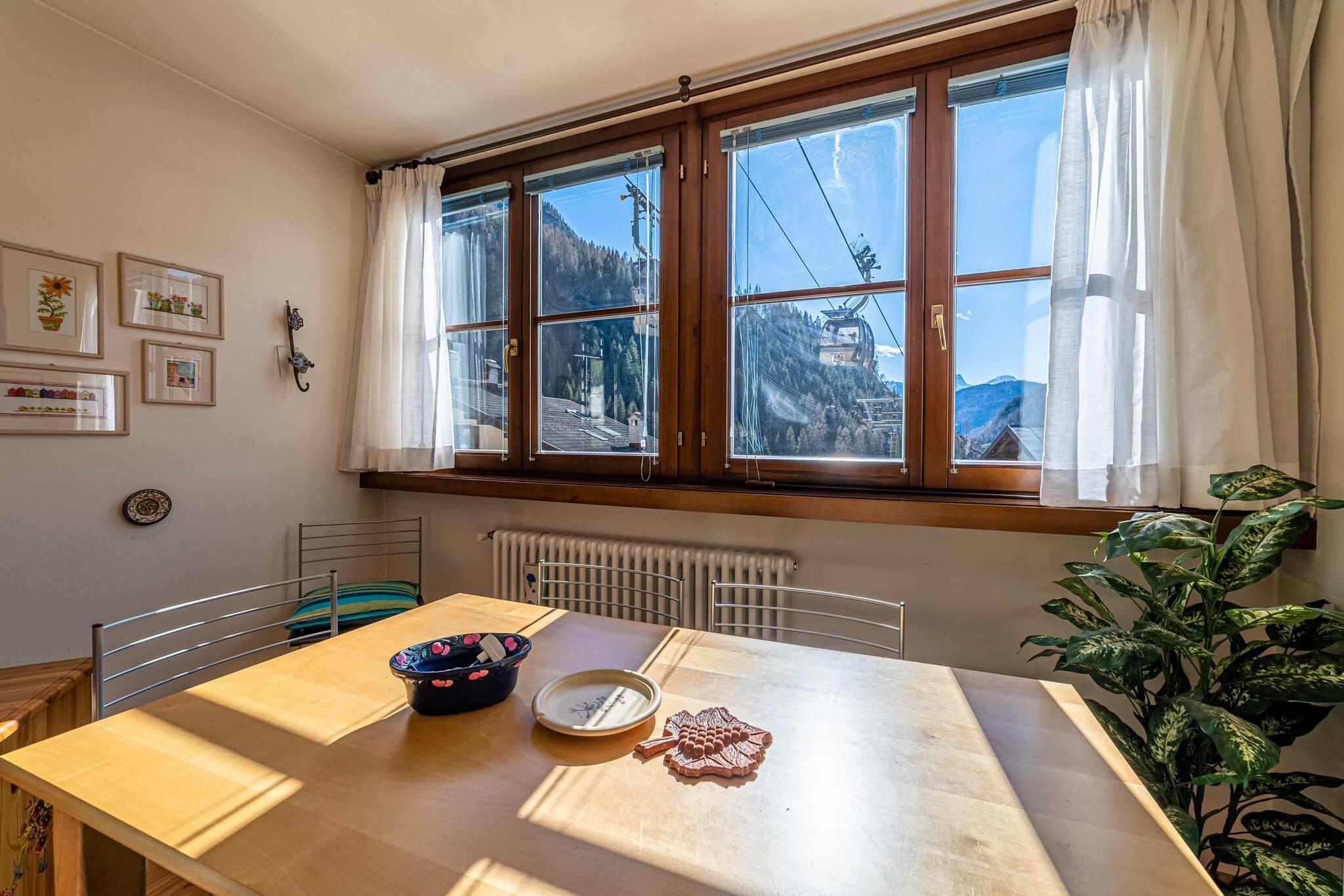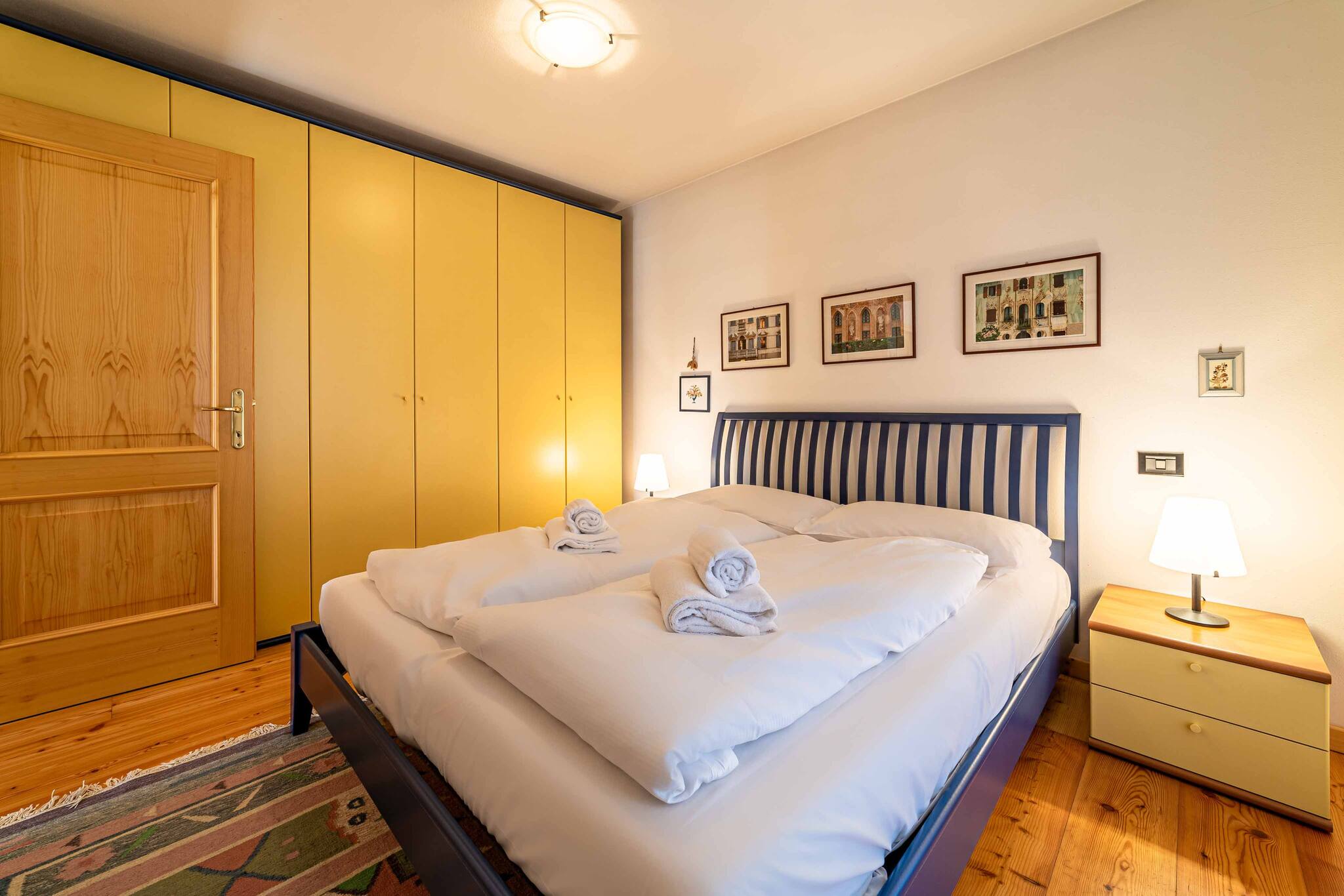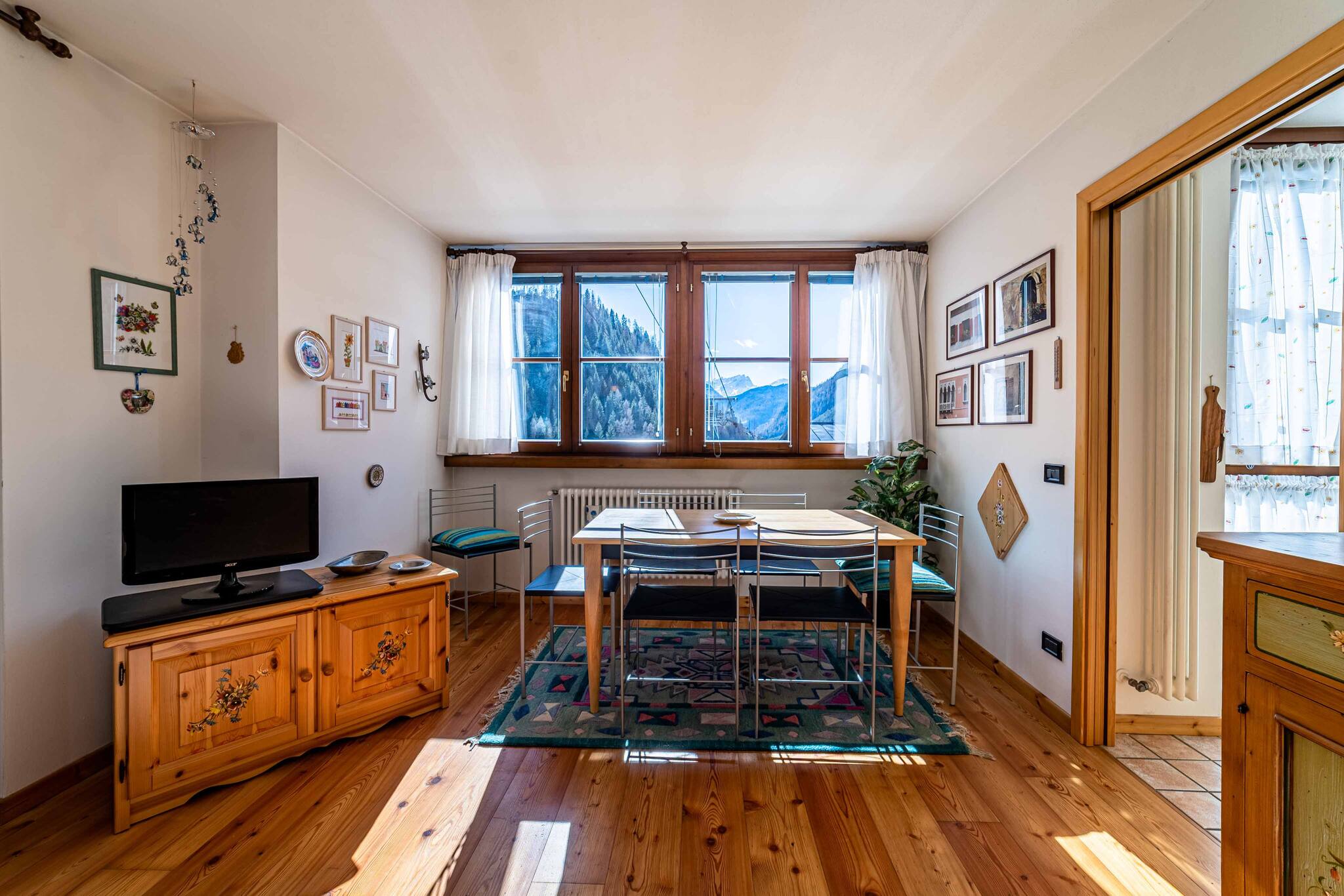 The apartment consists of a bright living area with kitchen and living room, a master bedroom, a double bedroom, two bathrooms (one with shower, the other with bathtub) and a balcony that offers relaxing views of the mountains. The environment is carefully detailed, designed to offer a pleasant stay in every season.