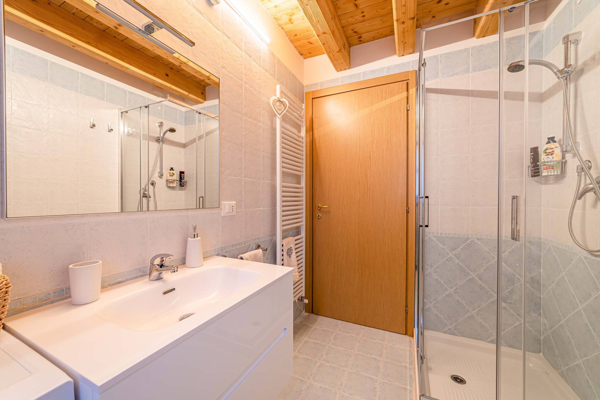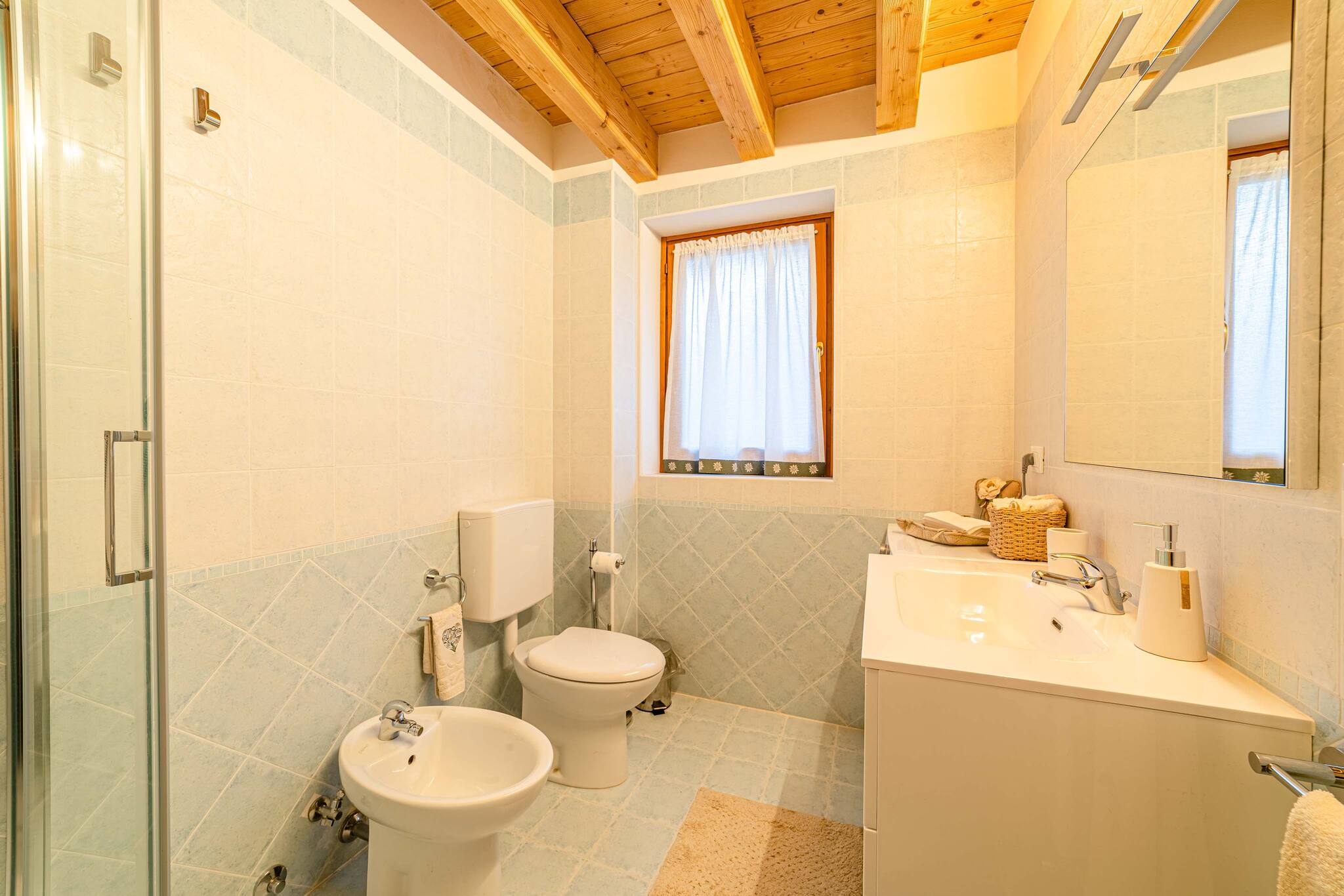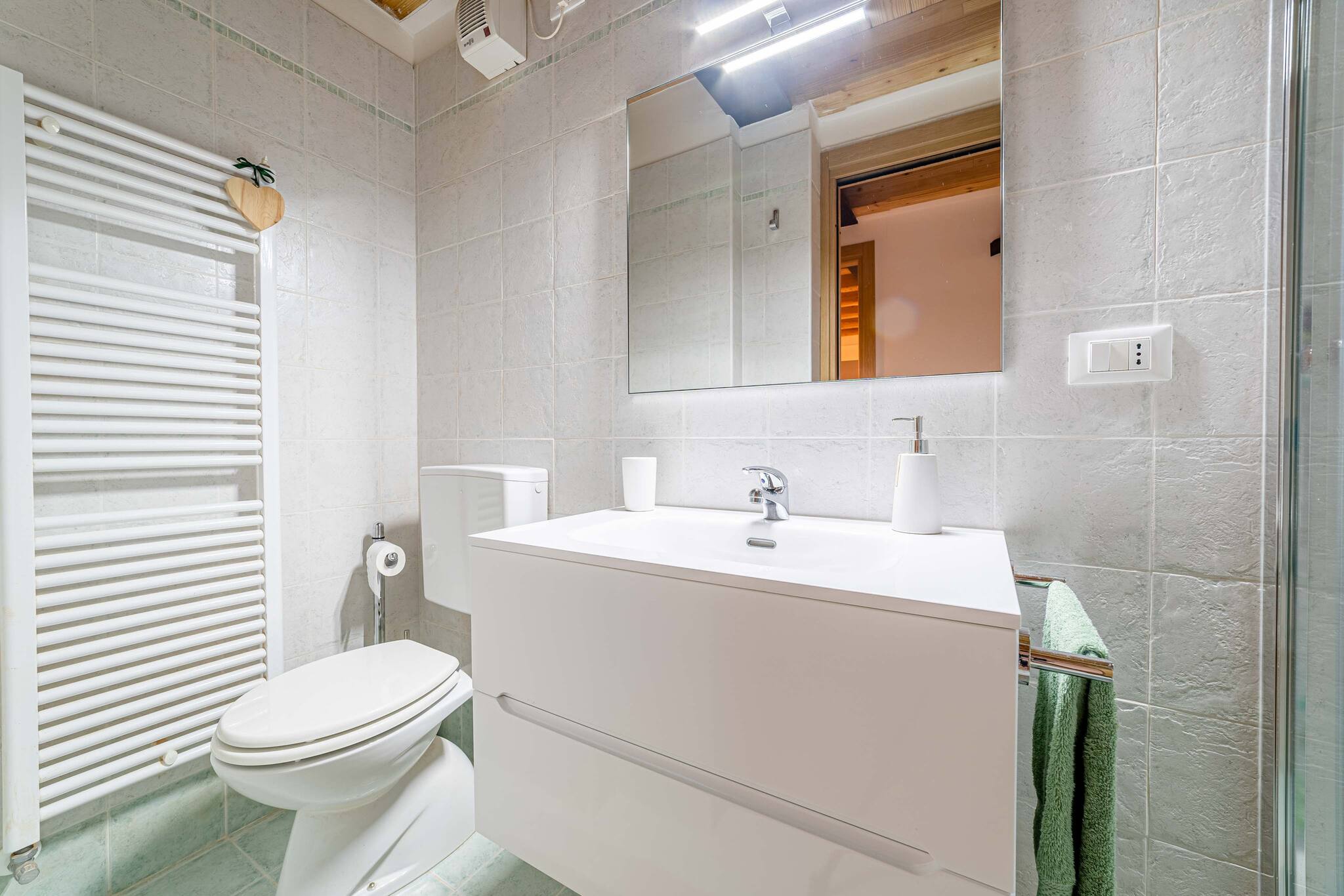 The apartment consists of a bright living area with kitchen and living room, a master bedroom, a double bedroom, two bathrooms (one with shower, the other with bathtub) and a balcony that offers relaxing views of the mountains. The environment is carefully detailed, designed to offer a pleasant stay in every season.