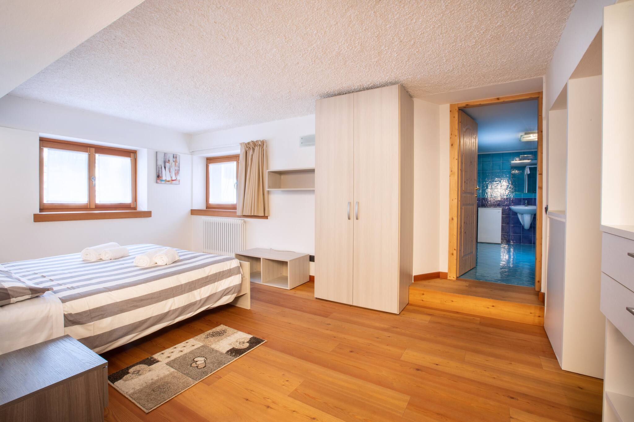 The apartment consists of a bright living area with kitchen and living room, a master bedroom, a double bedroom, two bathrooms (one with shower, the other with bathtub) and a balcony that offers relaxing views of the mountains. The environment is carefully detailed, designed to offer a pleasant stay in every season.