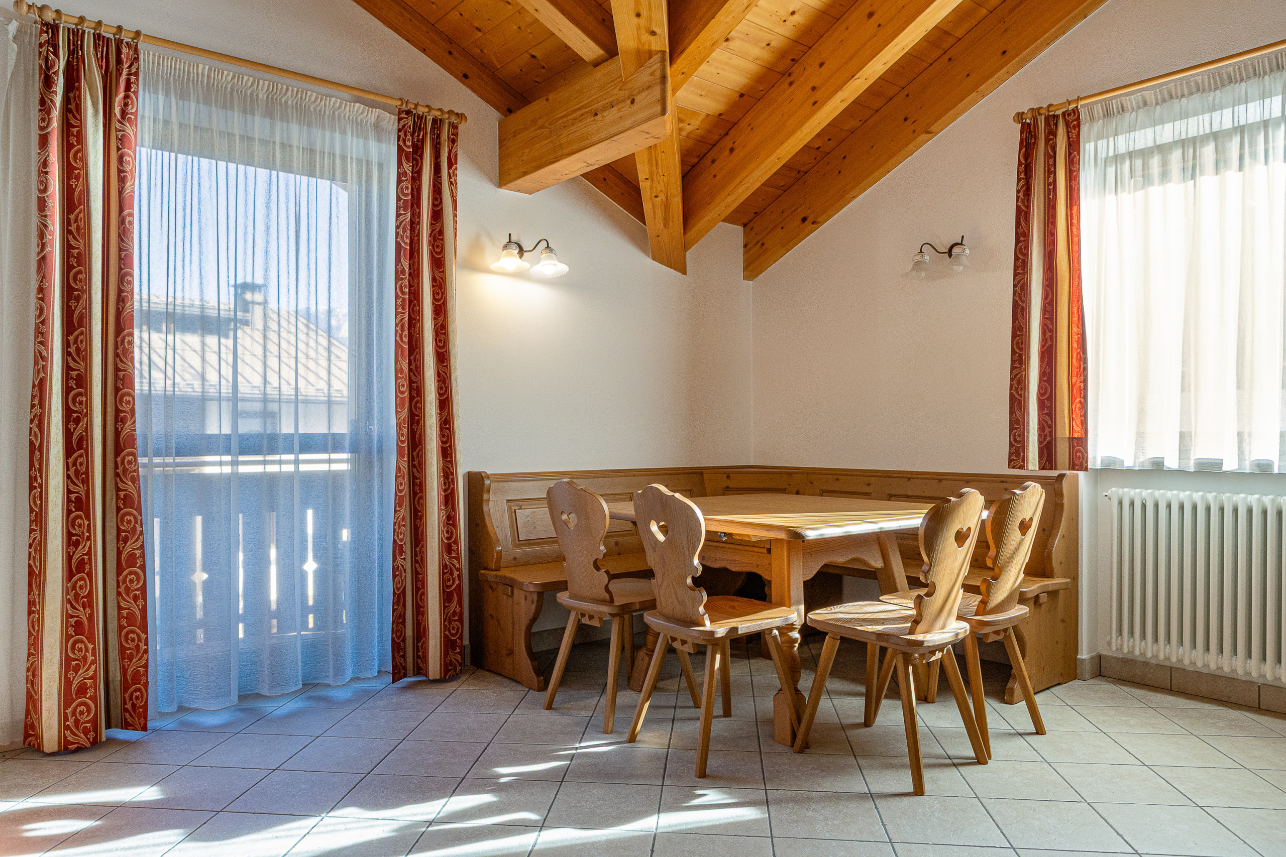 The two bathrooms are another highlight: one with a shower and the other with toiletries, offer practicality and comfort. The apartment is equipped with central heating that ensures an always welcoming and tempered environment, ideal after a day of hiking or skiing.