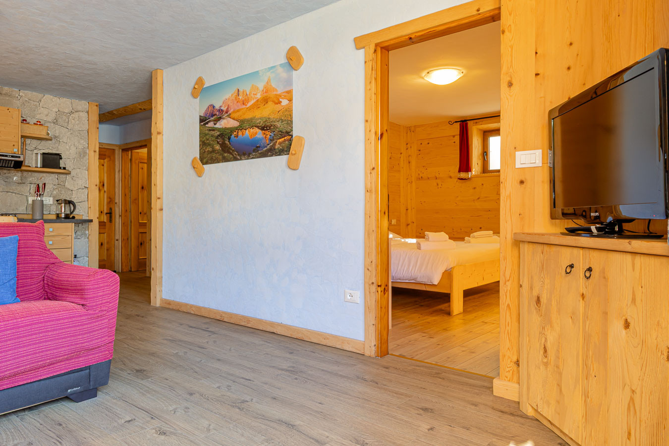 Maple is a delightful ground floor apartment located in Molino - Falcade, just a few steps from the ski lifts, perfect for a rejuvenating couple's holiday, amidst breathtaking landscapes and modern conveniences. The apartment also features a sofa bed to accommodate up to 4 people.