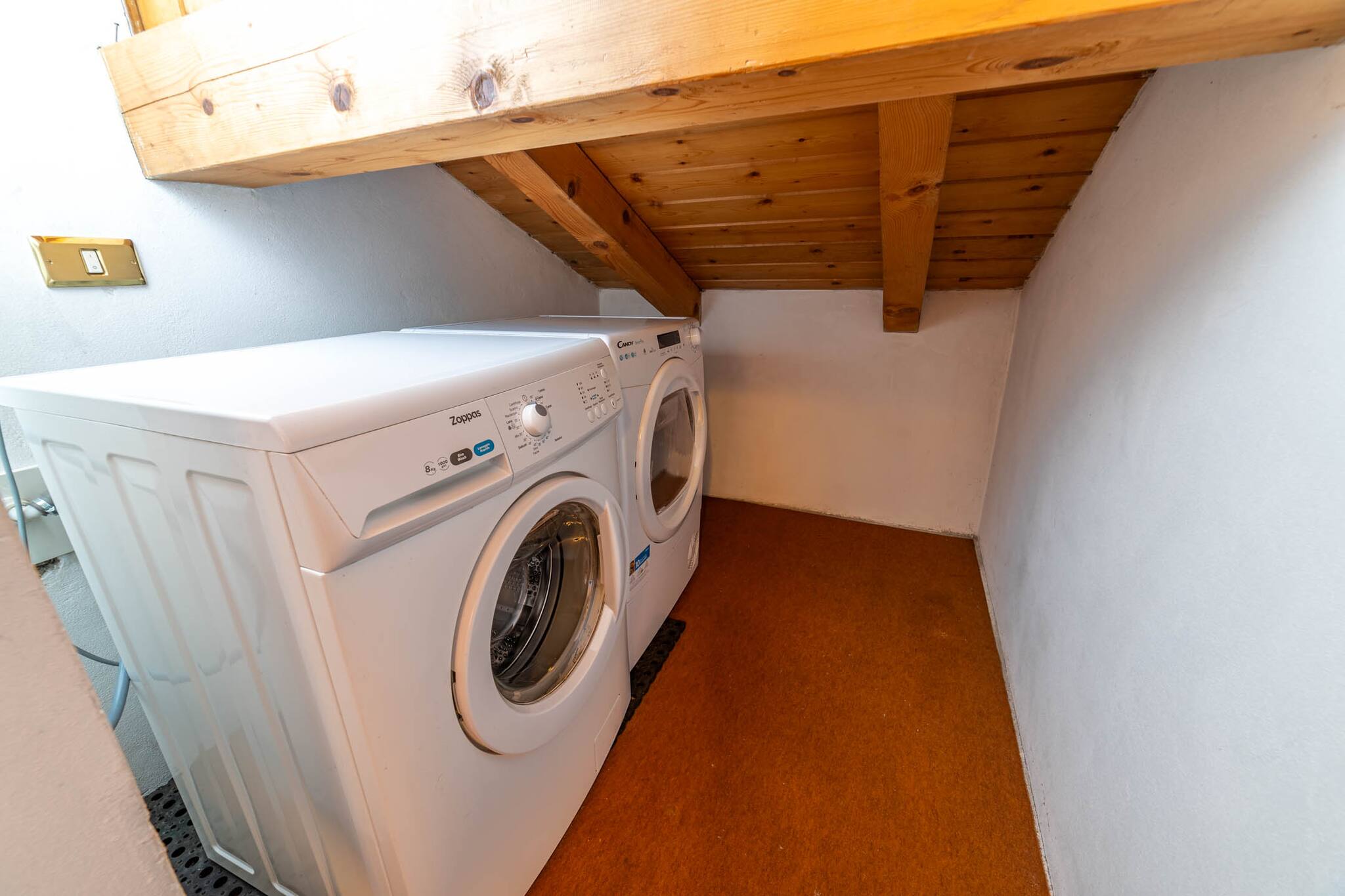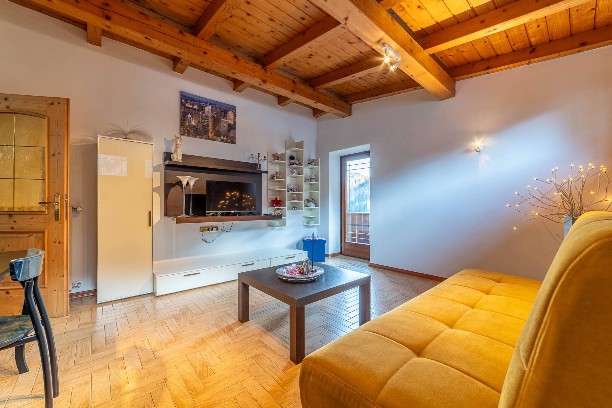 Bright attic on the second floor in the heart of Rocca Pietore. Welcoming and well-distributed spaces: separate living room and kitchen, two double bedrooms, windowed bathroom and storage room with washing machine and tumble dryer. The warmth of wood and intimate atmosphere make it perfect for those seeking relaxation and authenticity at the foot of the Marmolada.