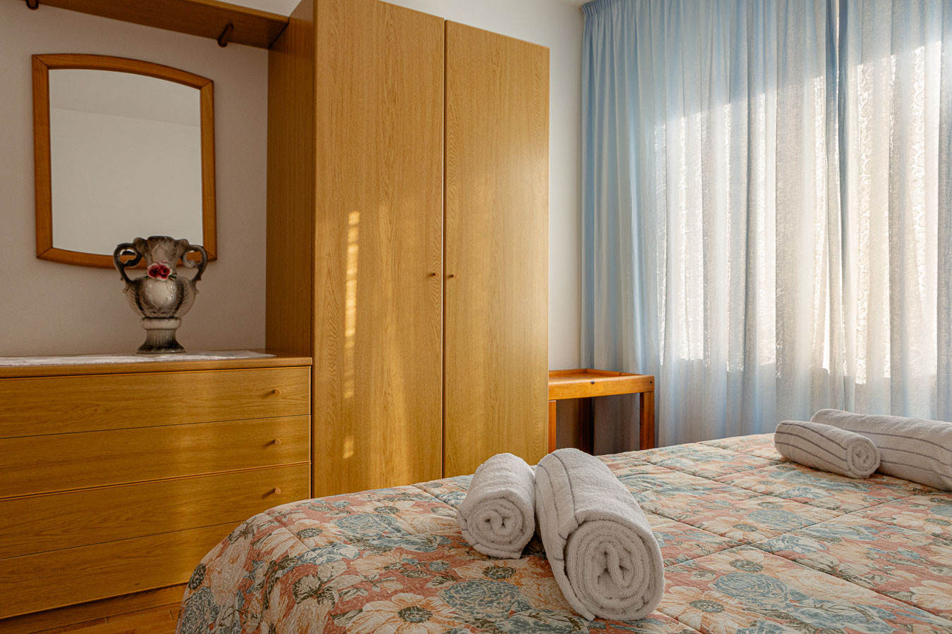 The accommodation is in Rocca Pietore, in a quiet area with a panoramic view of Monte Civetta and the Cordevole valley, a peaceful place immersed in the woods and ideal for spending a few days of holiday in the Dolomites. It is a three-room apartment with independent access on the ground floor with 4 sleeping places, consisting of a living room/kitchen, two double bedrooms and a bathroom.