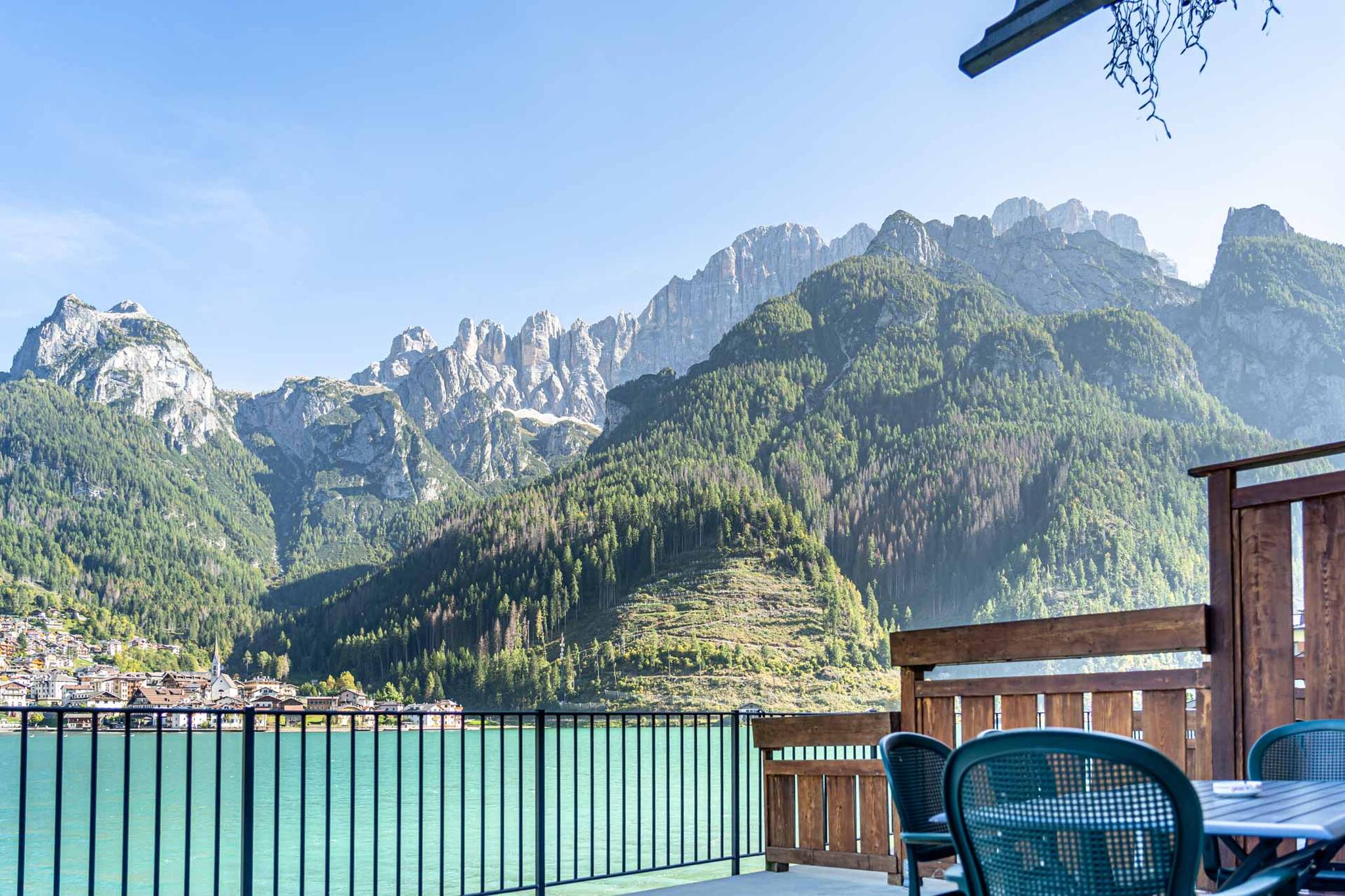 In the splendour of the UNESCO Dolomites, resting on the lakeside terrace you can relax admiring Monte Civetta.