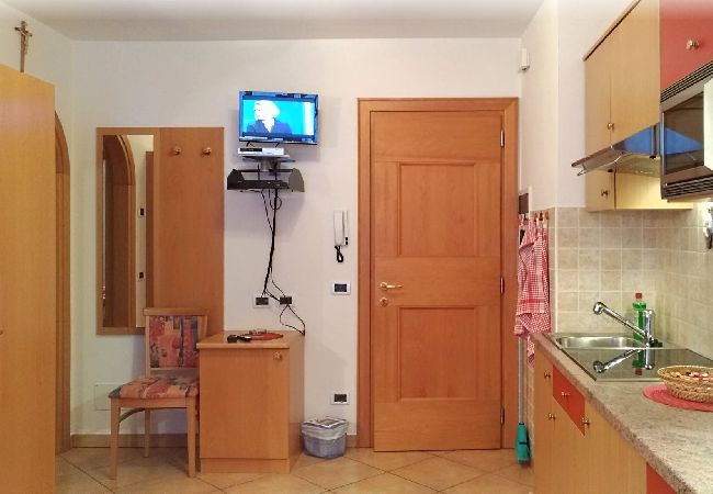 The accommodation consists of an entrance, living room with kitchenette, one double bedroom, a bathroom and a terrace. The kitchen is equipped with an induction hob, microwave oven, American coffee machine and all the necessary equipment for an autonomous and comfortable stay.