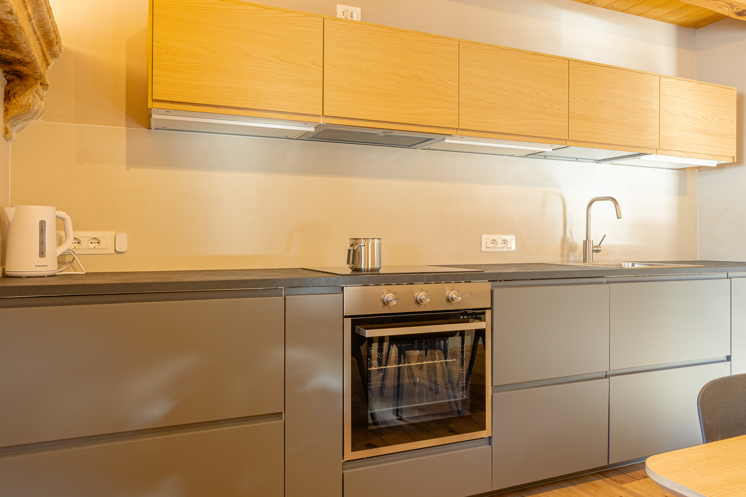 The fully equipped kitchen is a real strong point of the apartment. Equipped with an induction hob, refrigerator, freezer, dishwasher, oven, coffee machine and kettle, it allows you to prepare delicious meals as if at home. All kitchen utensils are available to make your culinary experience pleasant and convenient.