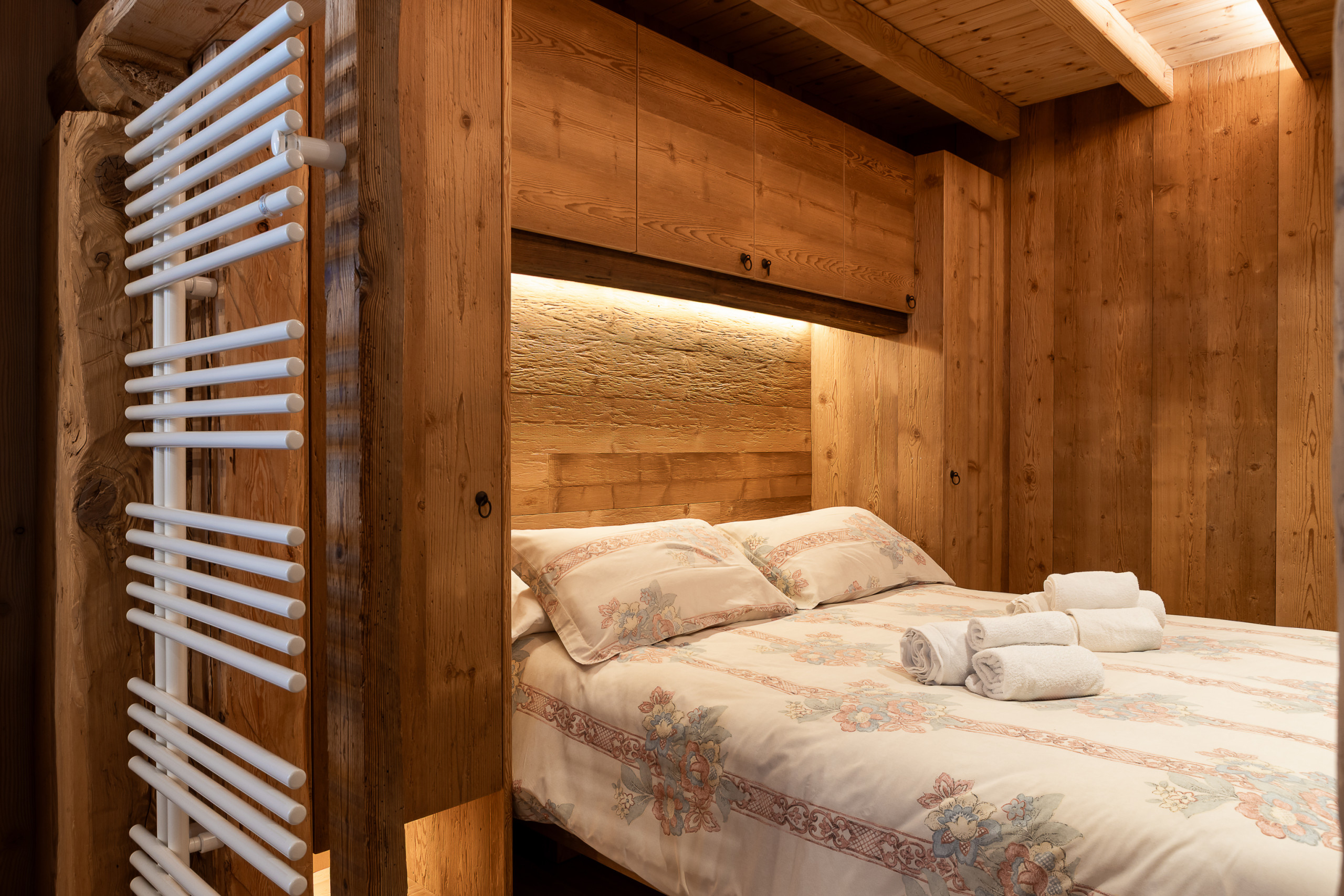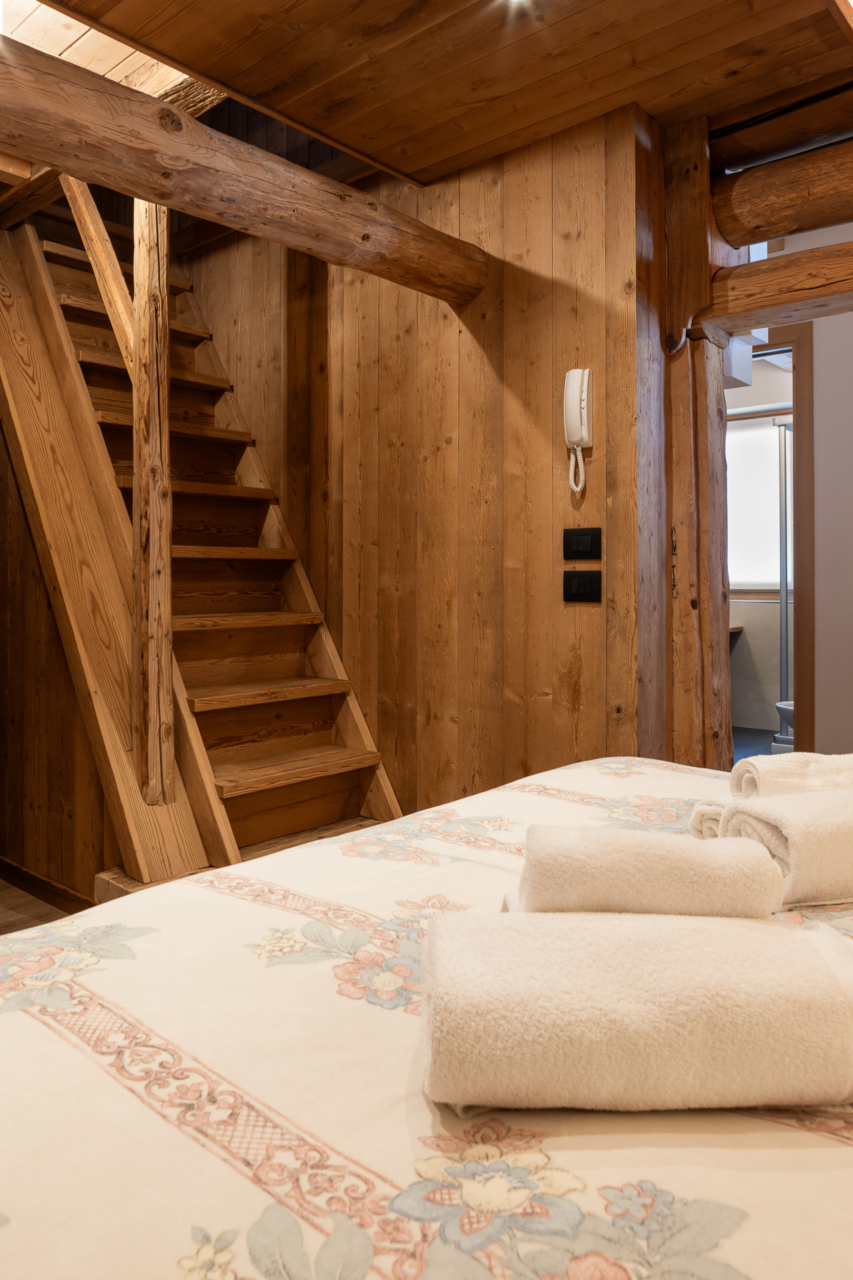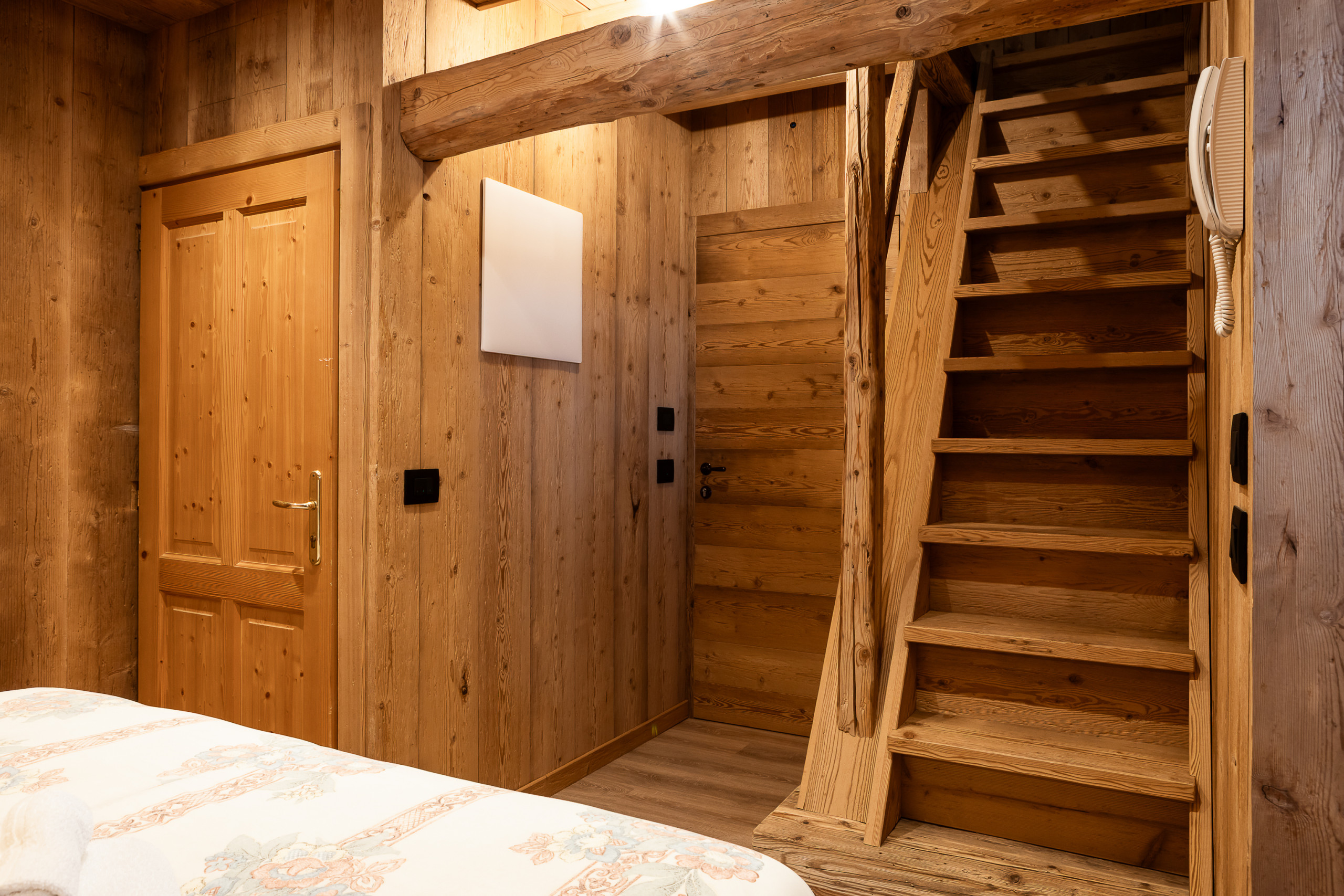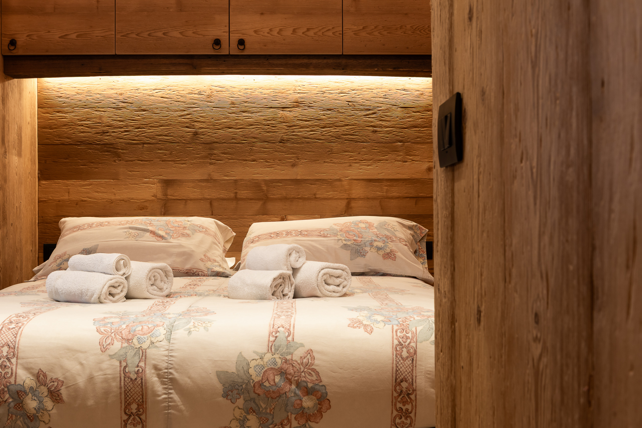 The Bedroom: An oasis of serenity with a comfortable queen-size bed, perfect for resting after unforgettable days on the alpine trails. Every detail has been carefully considered to guarantee you maximum relaxation and intimacy.