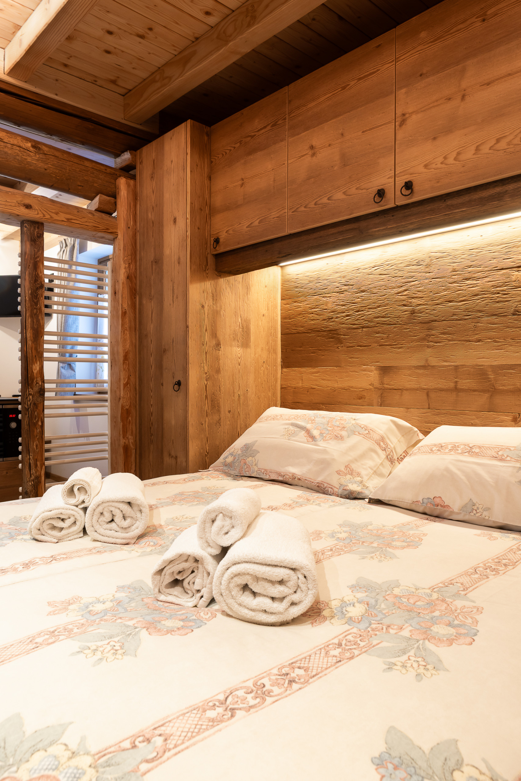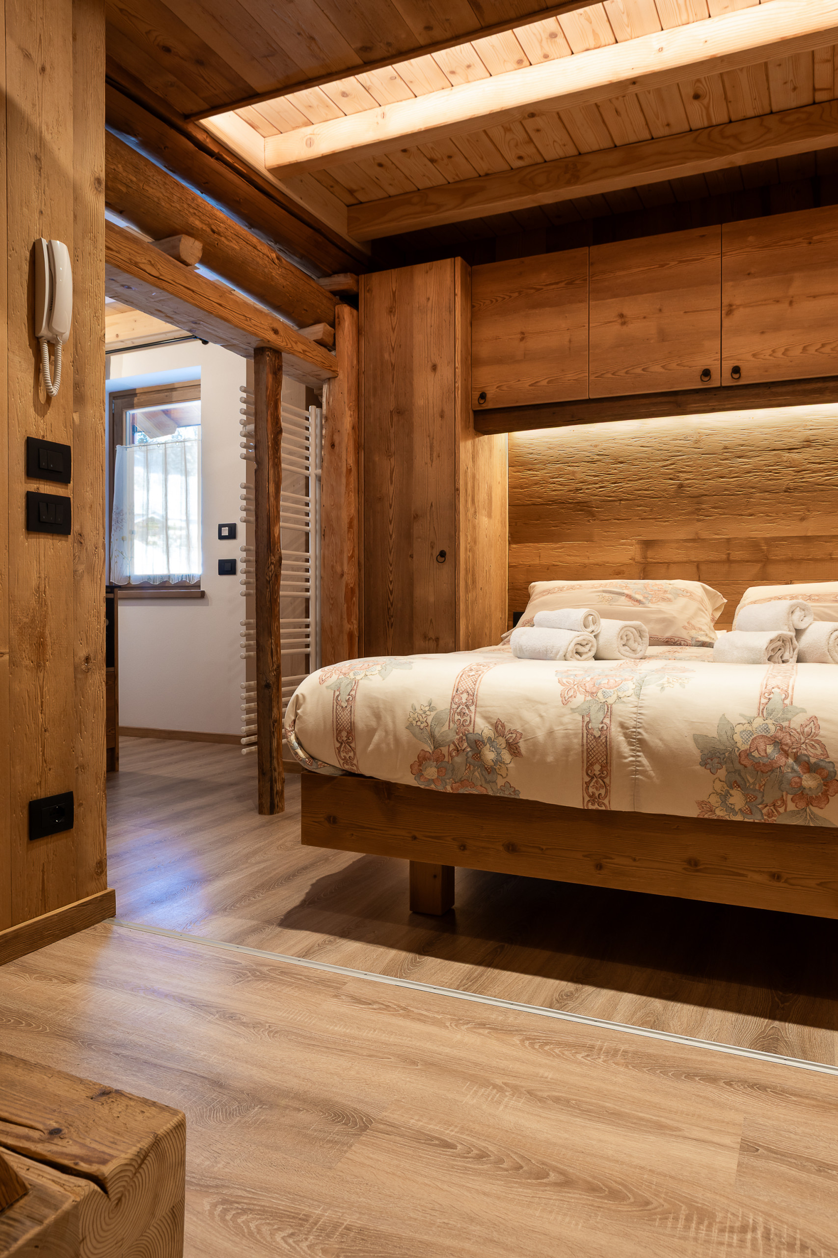 Bedroom: a welcoming and romantic space with an elegant queen-size bed, ideal for resting after days of mountain adventures. The bedroom is designed to guarantee maximum relaxation and the serenity that every couple deserves, creating the perfect atmosphere for moments of pure intimacy.